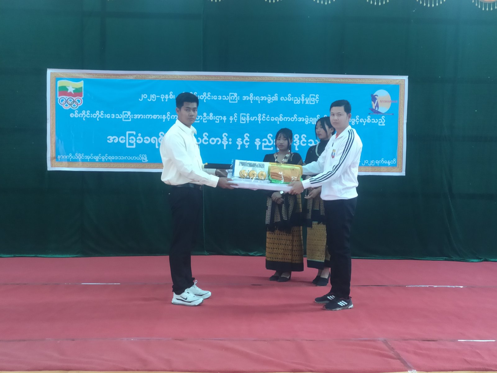 ထို့နောက် စစ်ကိုင်းတိုင်းဒေသကြီး၊ အားကစားနှင့်ကာယပညာဦးစီးဌာနနှင့် မြန်မာနိုင်ငံခရစ်ကတ်အဖွဲ့ချုပ်မှ ထောက်ပံ့ပေးအပ်သော နည်းဒိုင်/နည်းပြ သင်တန်းသား၀တ်စုံအင်္ကျီများနှင့် သင်ထောက်ကူပစ္စည်းများကို မြန်မာနိုင်ငံခရစ်ကတ်အဖွဲ့ချုပ်မှ သင်တန်းနည်းပြဆရာ ဦးထွေးကိုကိုက လဟယ်မြို့နယ် အား/ကာမှူးထံ ပေးအပ်ပါသည်။