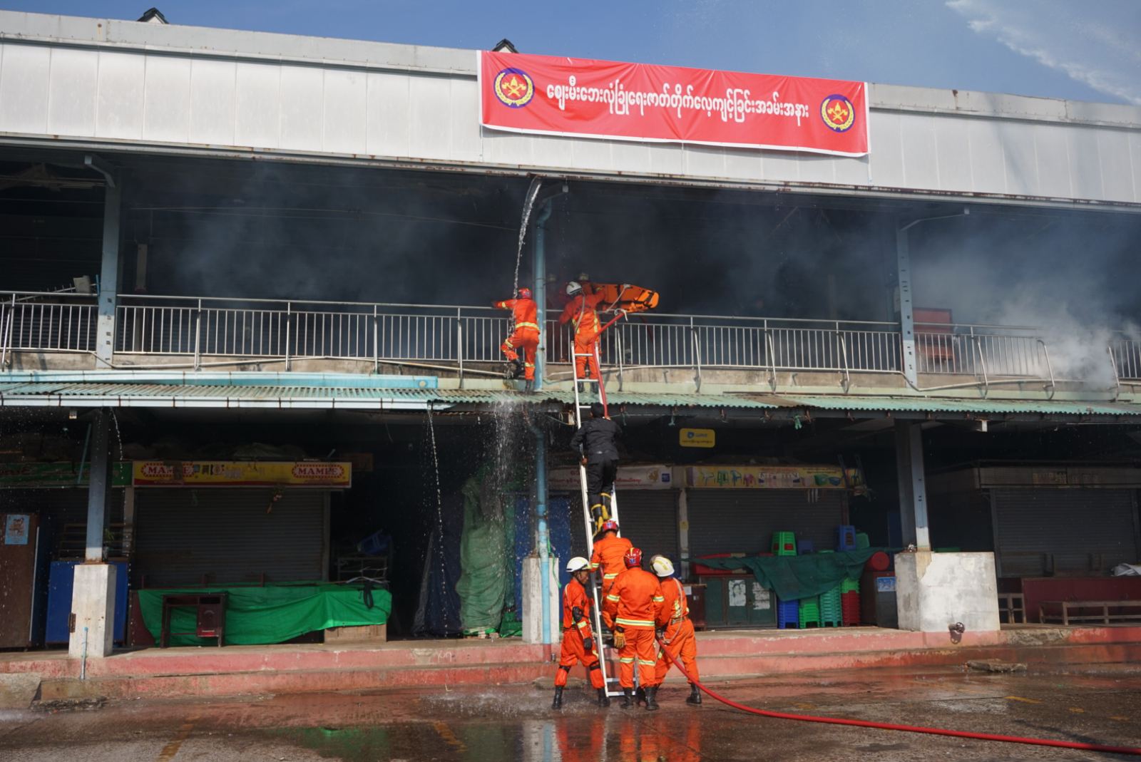 မွန်ပြည်နယ်၊ မော်လမြိုင်မြို့တွင် ၂၀၂၅ခုနှစ် စျေးမီးငြှိမ်းသတ်ရေး ဇာတ်တိုက်လေ့ကျင့်ခြင်းအခမ်းအနားကို ယနေ့နံနက်ပိုင်းက မော်လမြိုင်မြို့ အောက်လမ်းမကြီး အမှတ်(၁) ဈေးကြီးအတွင်း၌ ကျင်းပရာ ပြည်နယ်ဝန်ကြီးချုပ် ဦးအောင်ကြည်သိန်း၊ ပြည်နယ်တရားလွှတ်တော်တရားသူကြီးချုပ် ဦးညီညီစိုး၊ ပြည်နယ်အစိုးရအဖွဲ့ဝင် ဝန်ကြီးများ၊ ဌာနဆိုင်ရာ တာဝန်ရှိသူများ၊ ဈေးသူ၊ ဈေးသားများနှင့် ဇာတ်တိုက်လေ့ကျင့်ခန်းတွင်ပါဝင်သော တပ်ဖွဲ့/ဦးစီးဌာန၊ အဖွဲ့အစည်းများ၊ ဖိတ်ကြားထားသော ဧည့်သည်တော်များ တက်ရောက်ခဲ့သည်။