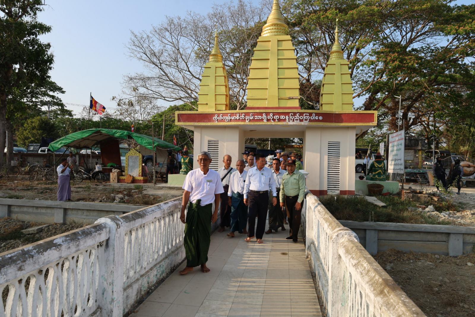 ဧရာဝတီတိုင်းဒေသကြီး၊ မအူပင်ခရိုင်၊ မအူပင်မြို့နယ်တွင် မတ်လ (၅)ရက်နေ့က မြေငလျင်လှုပ်ခတ်မှုကြောင့် ပျက်စီးဆုံးရှုံးခဲ့သည့်နေရာများအား ယမန်နေ့ မွန်းလွဲပိုင်းက ဧရာဝတီတိုင်းဒေသကြီးဝန်ကြီးချုပ် ဦးတင်မောင်ဝင်းကွင်းဆင်းကြည့်ရှုသည်။