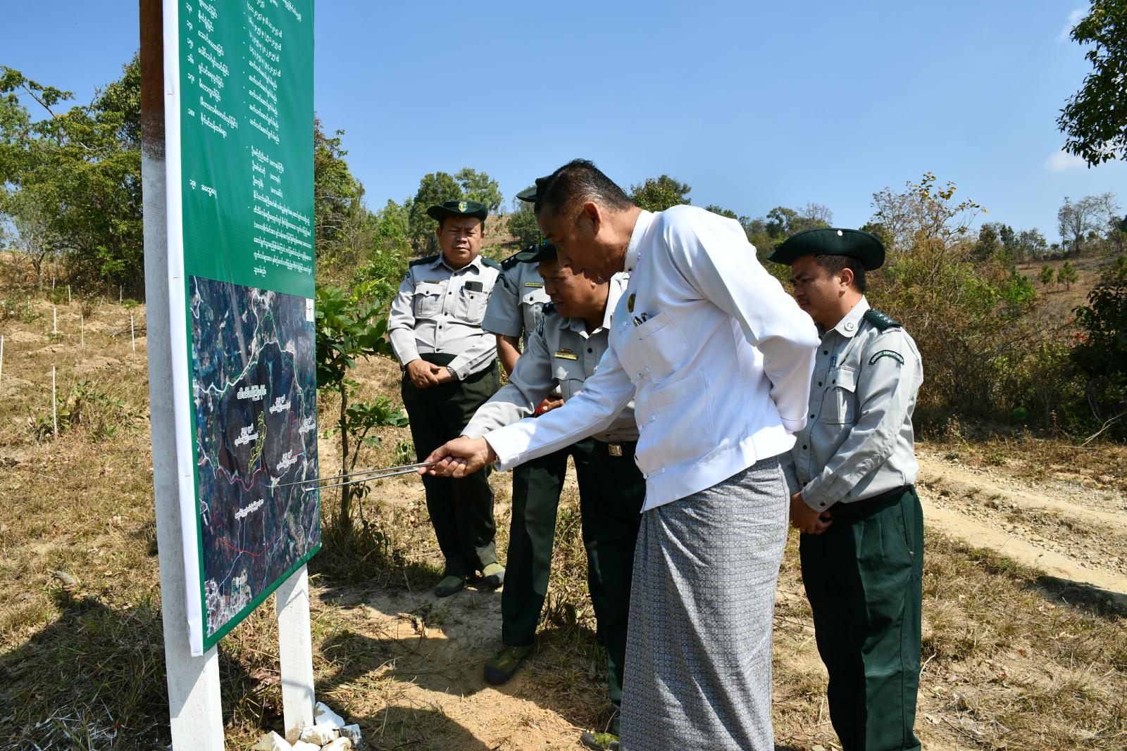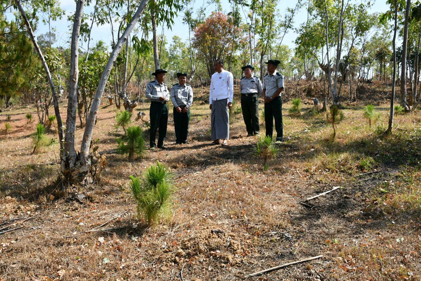 ပြည်နယ်သယံဇာတရေးရာဝန်ကြီးသည် ရှမ်းပြည်နယ်သစ်တောဦးစီးဌာန၊ ညွှန်ကြားရေးမှူး ဦးခင်မောင်ထွေး(၁)နှင့် တာဝန်ရှိသူများလိုက်ပါလျက် တောင်ကြီးမြို့ စိမ်းလန်းစိုပြည်ရေး ၂၀၂၅ ခုနှစ် မိုးရာသီ၌သစ်ပင်စိုက်ပျိုးရန်အတွက် တောင်ကြီး-အေးသာယာအတက်လမ်းဘေးဝဲယာတွင် မြေနေရာရှာဖွေခဲ့ပြီး စစ်ဆေးတွေ့ရှိသည့်မြေနေရာ(၂)ဧကခန့် မြေနေရာရှင်းလင်းခြင်းလုပ်ငန်းနှင့်မြေပြုပြင်ခြင်းလုပ်ငန်းများ အချိန်မီပြီးစီးအောင်ဆောင်ရွက်သွားရန်၊ ၂၀၂၅ ခုနှစ် မိုးရာသီတွင်စိုက်ပျိုးမည့် တောင်ကြီး-အေးသာယာ အတက်လမ်းဘေးရှိ(၃)ဧကနှင့် ပစောက်ကွေ့တွင်စိုက်ပျိုးမည့် သစ်ပင်(၂၂၀)ပင်တို့အတွက် မြေပြုပြင်ထားရှိမှုတို့အားကြည့်ရှုစစ်ဆေးခြင်း၊ နိုင်ငံတော်အကြီးအကဲ၏လမ်းညွှန်ချက်အရ တောင်ကြီးမြို့ရေလုံလောက်စွာရရှိရေးအတွက် ထီသိမ်ကန်ကြိုးဝိုင်းအတွင်း ၂၀၂၅ ခုနှစ် မိုးရာသီကာလတွင် တည်ထောင်စိုက်ပျိုးမည့် ကွက်လပ်ဖြည့်ထင်းရှူး(၁၀၀၀၀)ပင် စိုက်ပျိုးရန်အတွက် မြေပြုပြင်ထားရှိမှုနှင့် ၂၀၂၄ ခုနှစ် မိုးရာသီကာလအတွင်းစိုက်ပျိုးထားသည့် ကွက်လပ်ဖြည့်ထင်းရှူး(၁၀၀၀၀)ပင် ရှင်သန်အောင်မြင်နေမှုအခြေအနေတို့အား ကြည့်ရှုစစ်ဆေးခြင်းများဆောင်ရွက်ပြီး တောင်ကြီး(ထင်း)ကြိုးဝိုင်း အကွက်အမှတ်(၉)အတွင်း ၂၀၂၅ ခုနှစ် မိုးရာသီကာလတွင်တည်ထောင်စိုက်ပျိုးထားသည့် ရေဝေရေလဲစိုက်ခင်း(၁၀၀)ဧက မြေပြုပြင်ထားရှိမှုအခြေအနေတို့အားကြည့်ရှုစစ်ဆေး၍ မုတ်သုံမိုးစတင်ဝင်ရောက်ပြီး မြေအစိုဓာတ်လုံလောက်စွာရရှိသည်နှင့်တစ်ပြိုင်နက် စိုက်ပျိုးခြင်းလုပ်ငန်းဆောင်ရွက်သွားရန်၊ တောင်ကြီး(ထင်း)ကြိုးဝိုင်းအတွင်း ကျူးကျော်မှုမရှိစေရေးထိန်းသိမ်းဆောင်ရွက်ရန်နှင့် စိုက်ခင်းနယ်နိမိတ်တွင်စိုက်ခင်းဆိုင်းဘုတ်တိုင်များစိုက်ထူသွားရန် လမ်းညွှန်မှာကြားခဲ့ကြောင်းသိရှိရသည်။