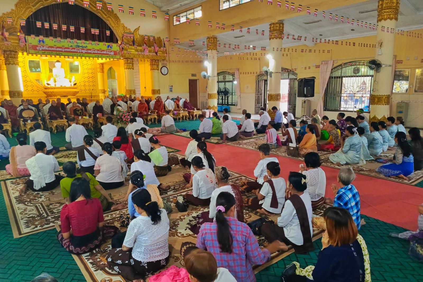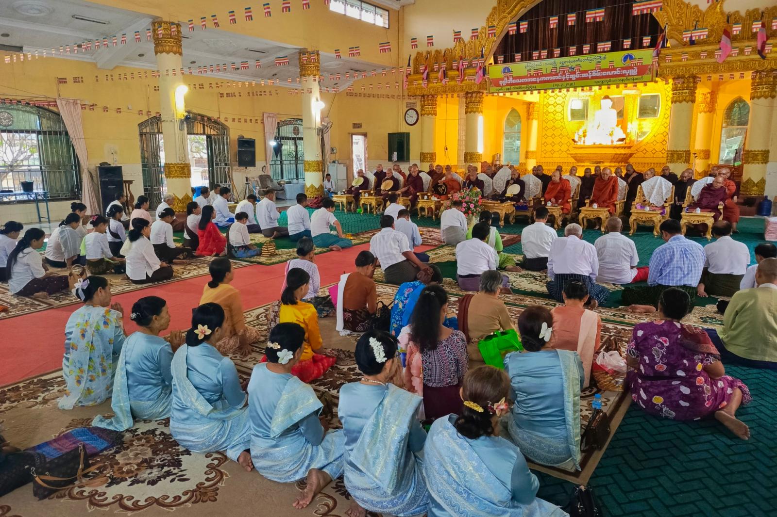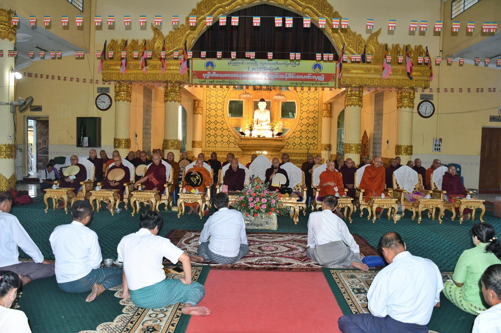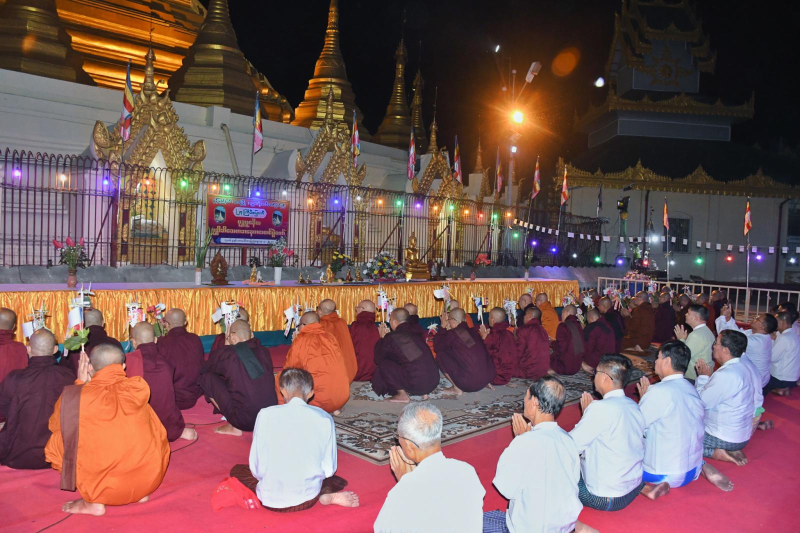 ဆက်လက်၍ ဆရာတော်သံဃာတော် အရှင်သူမြတ်များက ရွတ်ပွားသရဇ္ဈာယ် ချီးမြှင့်တော်မူသော မေတ္တသုတ်အစရှိသည့် ပရိတ်တရားတော်များ နာယူကြည်ညိုကြကာ အလှူရှင်များက ဆရာတော်ကြီးများထံ လှူဖွယ်ဝတ္ထုပစ္စည်းများ ဆက်ကပ်လှူဒါန်းကြပြီး လှူဒါန်းမှုအစုစုတို့အတွက် နိုင်ငံတော်သံဃမဟာနာယကအဖွဲ့ဝင် သဒ္ဓမဇောတိကာရာမကျောင်းတိုက် ပဓာနနာယကဆရာတော် ပိဋကတ္တရပါရဂူ၊ အဂ္ဂမဟာပဏ္ဍိတ ဘဒ္ဒန္တသုမနာဘိဝံသထံမှ ရေစက်ချအနုမောဒနာတရား နာယူခဲ့ကြသည်။