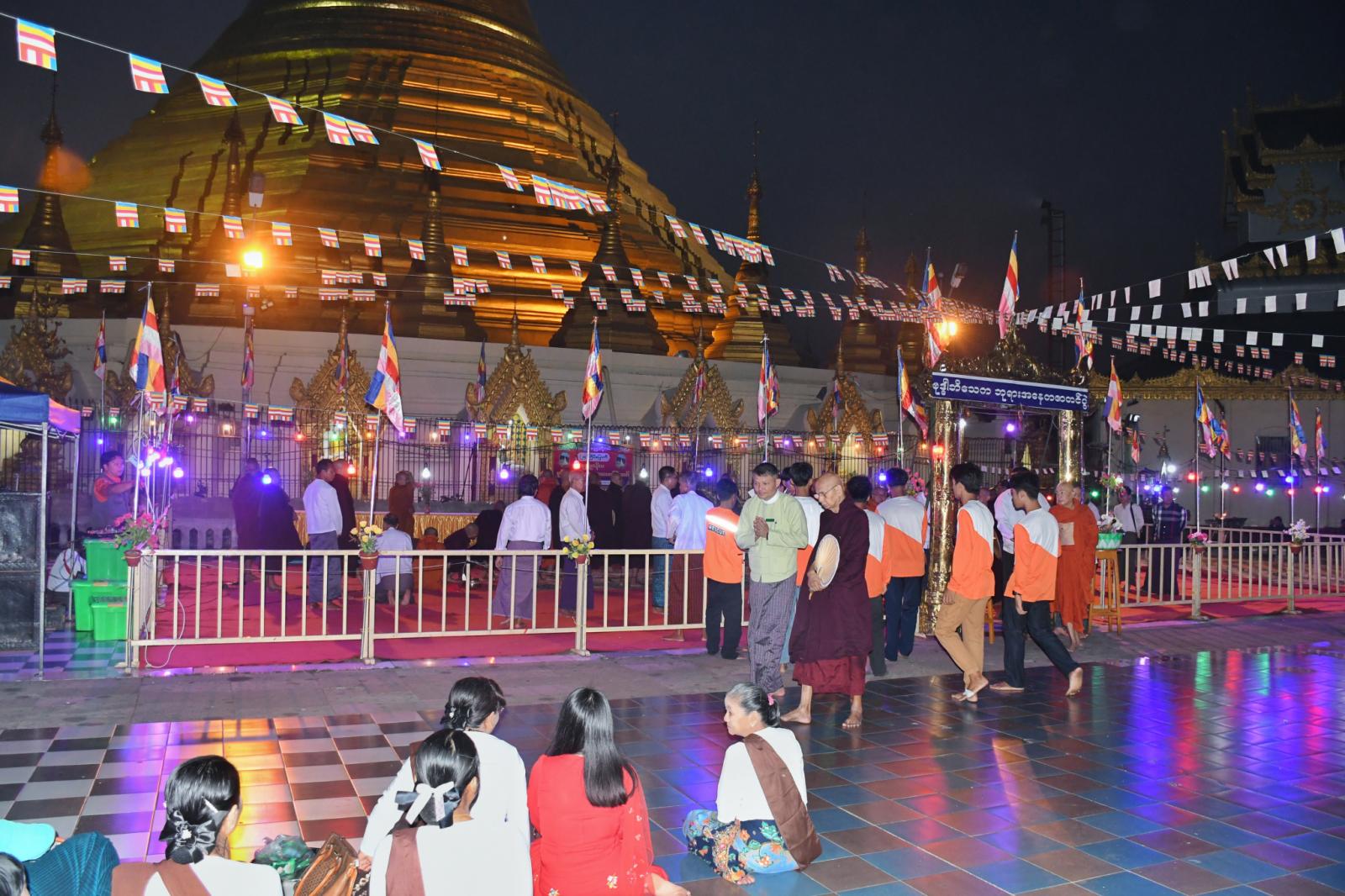 ထို့နောက် ခရိုင်နှင့်မြို့နယ် ဌာနဆိုင်ရာများ၊ စေတီတော်ဘဏ္ဍာတော်ထိန်းဂေါပကအဖွဲ့နှင့် အလှူရှင်များစုပေါင်းကာ ကြွရောက်လာကြသည့် ကျောင်းတိုက်အသီးသီးမှ ဆရာတော်၊ သံဃာတော် အရှင်သူမြတ်များအား ဆွမ်းဆန်စိမ်းနှင့် လှူဖွယ်ဝတ္ထုပစ္စည်းများ လောင်းလှူခဲ့ကြကြောင်း သိရသည်။