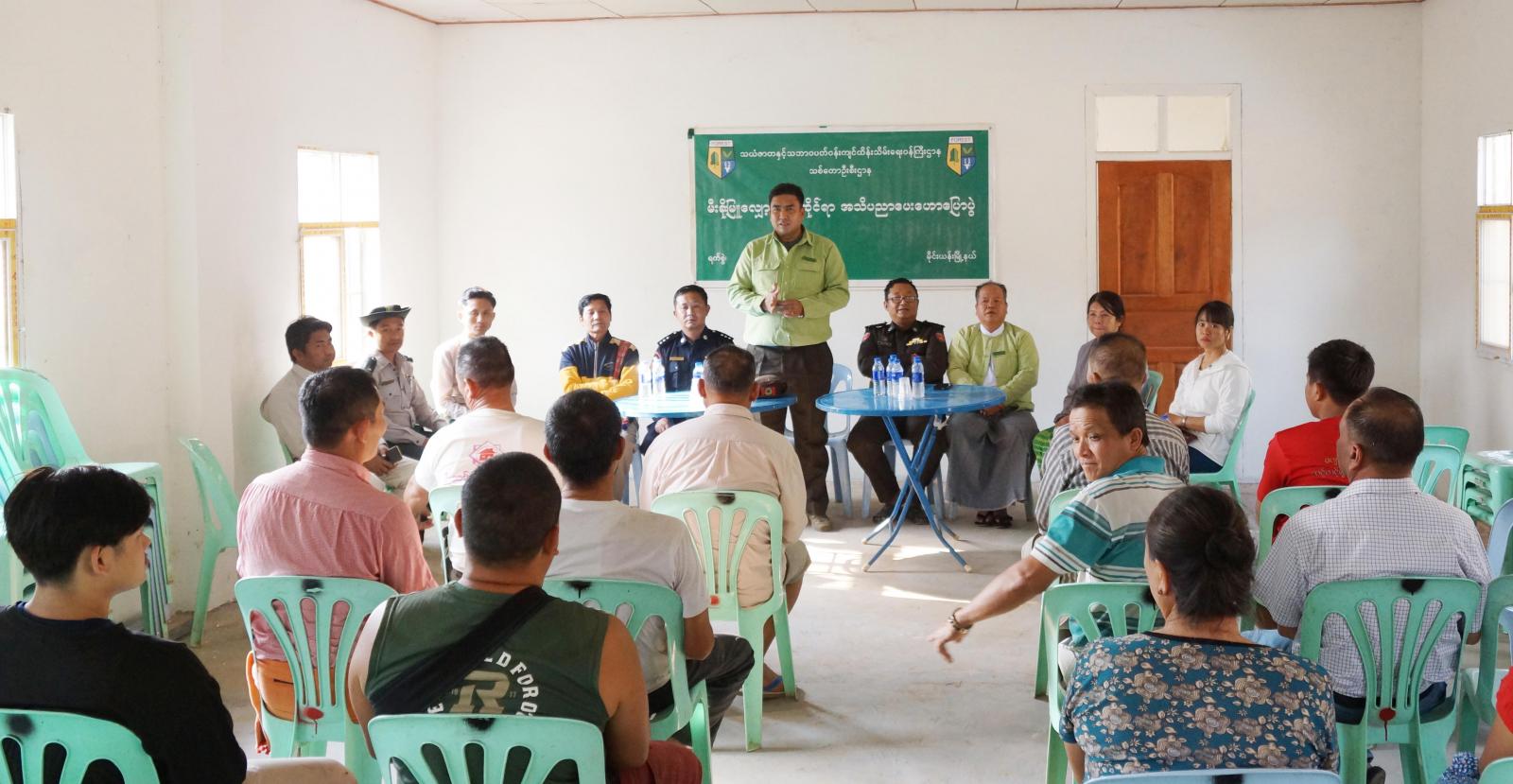 ထိုသို့ အသိပညာပေးကွင်းဆင်းဆောင်ရွက်ရာတွင် မိုင်းယန်းခရိုင်အထွေထွေအုပ်ချုပ်ရေးဦးစီးဌာန ဒုတိယခရိုင်အုပ်ချုပ်ရေးမှူး ဦးမန်ကိုဟောနှင့် မြို့နယ်အုပ်ချုပ်ရေးမှူး ဦးအောင်ဇင်ဦးတို့က ဒေသတည်ငြိမ်အေးချမ်းရေး၊ တရားဉပဒေစိုးမိုးရေး၊ ကျန်းမာရေး၊ ပညာရေး၊ လူမှုရေးနှင့် ဒေသဖွံ့ဖြိုးရေးဆိုင်ရာကိစ္စရပ်များ ဆောင်ရွက်ပေးနိုင်ရေးအတွက် ဆောင်ရွက်လျက်ရှိကြောင်း ပြောကြားသည်။ ထို့နောက် မြို့နယ်မီးသတ်ဦးစီးမှူးက ကျေးရွာနေပြည်သူများအား ကျေးရွာများအတွင်း Fire Hotspot မီးလောင်မှုမဖြစ်ပေါ်စေရန်အတွက် ကျေးရွာနေပြည်သူများအနေဖြင့် မီးဘေးလုံခြုံရေးဆိုင်ရာ အသိပေးနှိုးဆော်ချက်များ၊ မီးဘေးအန္တရာယ်ကြိုတင်ကာကွယ်ရေး အကြံပြုချက်များအား သတိပြုလိုက်နာဆောင်ရွက်ကြရန် အသိပညာပေး ရှင်းလင်းဟောပြောသည်။ ဆက်လက်၍ မြို့နယ်သစ်တောဦးစီးအရာရှိက မီးခိုးမြူဖြစ်ပေါ်ရခြင်း အဓိကအကြောင်းအရင်းများ၊ မီးခိုးမြူလျှော့ချရေးအတွက် လိုက်နာဆောင်ရွက်ရမည့် နည်းလမ်းများ တောင်ယာမီးရှို့ခြင်းအစား သဘာဝဓာတ်မြေဩဇာပြုလုပ်အသုံးပြုခြင်းဖြင့် မီးခိုးမြူလျှော့ချနိုင်သည့် အကြောင်းအရာများကို အသိပညာပေး ရှင်းလင်းဟောပြောခဲ့ကြကြောင်း သိရသည်။