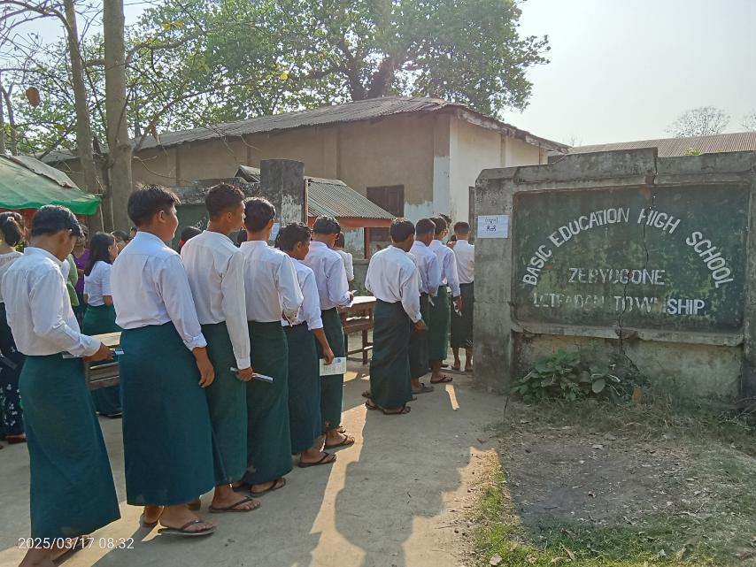 ပဲခူးတိုင်းဒေသကြီး၊ သာယာဝတီခရိုင်၊ လက်ပံတန်းမြို့နယ်တွင် ၂၀၂၅ ခုနှစ် တက္ကသိုလ်ဝင်တန်းစာမေးပွဲ မြန်မာစာဘာသာရပ်ကို စာစစ်ဌာန (၄) ခု၌ ယနေ့နံနက် (၉) နာရီအချိန်က ကျောင်းသား/ကျောင်းသူများ စတင်ဖြေဆိုခဲ့ကြသည်။