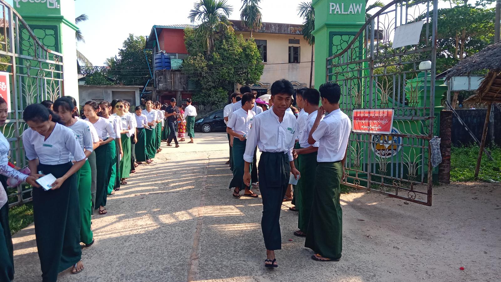 အဆိုပါ တက္ကသိုလ်ဝင်တန်းစာမေးပွဲအား ကျောင်းသား/သူများအနေဖြင့် အေးချမ်းပျော်ရွှင်စွာ ဖြေဆိုနိုင်ရေးအတွက် အမှတ်(၁) စစ်နယ်မြေမှူး၏ လမ်းညွှန်မှုဖြင့် မြို့နယ် စီမံအုပ်ချုပ်ရေးအဖွဲ့ ဥက္ကဋ္ဌနှင့် အဖွဲ့ဝင်များ၊ ဌာနဆိုင်တာဝန်ရှိသူများ၊ မီးသတ်တပ်ဖွဲ့ဝင်များ၊ မြို့နယ်ပညာရေးမှူး ဒေါ်စန်းစန်းဌေးနှင့် ဆရာ၊ဆရာမများ၊ စာမေးပွဲကြီးကြပ်ရေးအဖွဲ့နှင့် ကျန်းမာရေးဌာနမှ ဝန်ထမ်းများက အတွင်းစည်း/အပြင်စည်းများဖြင့် အနီးကပ်ကြီးကြပ် ဆောင်ရွက်ပေးလျက်ရှိကြောင်း သိရသည်၊