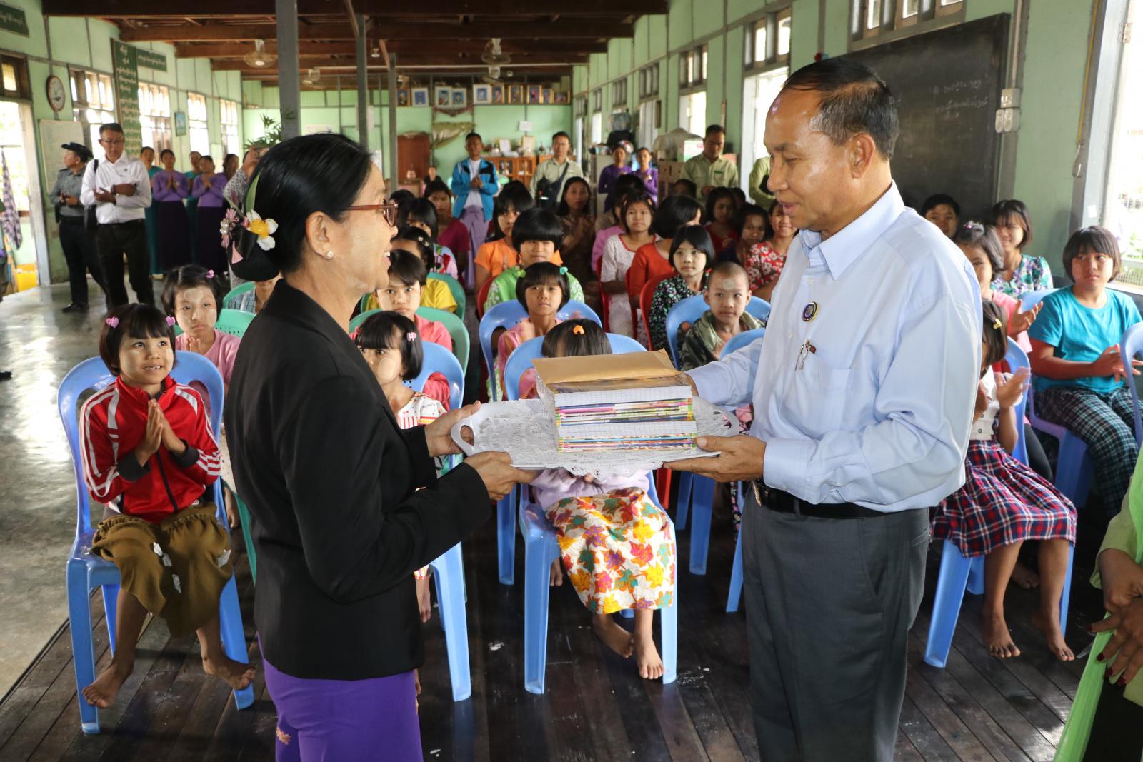 ထို့နောက် တိုင်းဒေသကြီးဝန်ကြီးချုပ်နှင့် တာဝန်ရှိသူများသည် ကလေးမြို့၊ ဧရိပ်မွန် အမျိုးသမီးမိဘမဲ့ဂေဟာသို့ရောက်ရှိရာ ကလေးငယ်များနှင့် ရင်းရင်းနှီးနှီးတွေ့ ဆုံ၍နှုတ်ဆက်စကားများပြောကြားပြီး တိုင်းဒေသကြီး အစိုးရအဖွဲ့ဝင်များနှင့်အတူ ကျောင်းအုပ်ဆရာမကြီးထံ ကျောင်းသုံးဗလာစာအုပ်၊ စာရေးကိရိယာများ၊ ဂုဏ်ပြုချီးမြှင့် ငွေများနှင့်ဆန်များ ပေးအပ်ခဲ့ကြသည်။