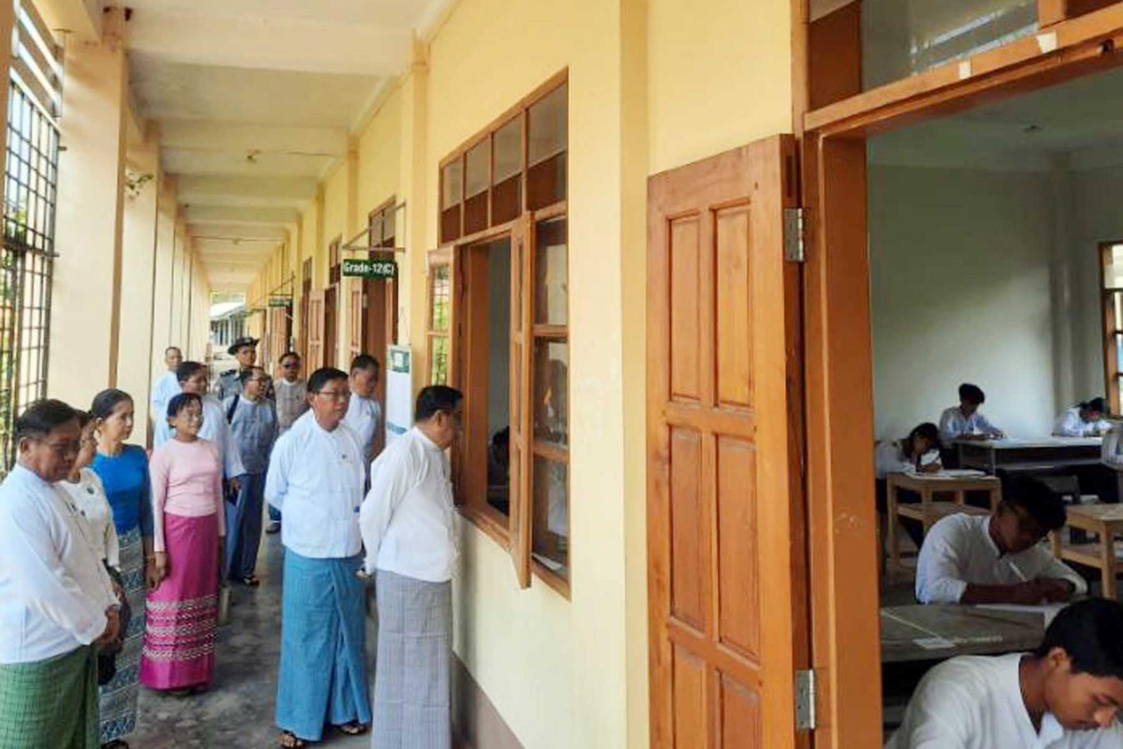 ရှေးဦးစွာ တိုင်းဒေသကြီးပညာရေးမှူးရုံးမှ ညွှန်ကြားရေးမှူး ဦးဝင်းနောင်က စာမေးပွဲဖြေဆိုနေစဉ်ကာလအတွင်း ဆောင်ရွက်ထားရှိမှုအခြေအနေများနှင့် ဖြေဆို/ ပျက်ကွက်သူ ဦးရေစာရင်းများအား ရှင်းလင်းတင်ပြရာ တိုင်းဒေသကြီးဝန်ကြီးချုပ် ဦးမြတ်ကိုက စာမေးပွဲအခန်းတာဝန်ကျ ကြီးကြပ်ရေးမှူးများနှင့် သက်ဆိုင်ရာတာဝန်ရှိသူများအား ကျောင်းသား/ သူများ စိတ်အေးချမ်းသာစွာဖြေဆိုနိုင်ရေး အတွက် လိုအပ်သည်များကို ဖြည့်ဆည်းဆောင်ရွက်ပေးကြရန်လိုအပ်ကြောင်း၊ စာမေးပွဲဖြေဆိုနေသည့် ကာလအတွင်း စာဖြေခန်း အတွင်းအပြင်သန့်ရှင်းရေး၊ လေဝင်လေထွက်ကောင်းမွန်ရေးနှင့်အလင်းရောင် လုံလောက်စွာရရှိရေး ဆောင်ရွက်ပေးကြရန်လိုအပ်ကြောင်း၊စာဖြေသူနှင့်စာမေးပွဲလုပ်ငန်း အနှောင့်အယှက်မဖြစ်စေရေး ဂရုစိုက်ဆောင်ရွက်ပေးကြရန်လိုအပ်ကြောင်း၊ ကျောင်းသား/သူများ၏ ကျန်း မာရေးအား အလေးထားဆောင်ရွက်ပေးကြရန် လိုအပ်ကြောင်း၊ စာမေးပွဲကို စာမေးပွဲစည်းမျဉ်းစည်းကမ်းများနှင့်အညီ ဖြေဆိုနိုင်ရေး ဝိုင်း ဝန်းကူညီဆောင်ရွက်ပေးရန် လိုအပ်ကြောင်း မှာကြားသည်။