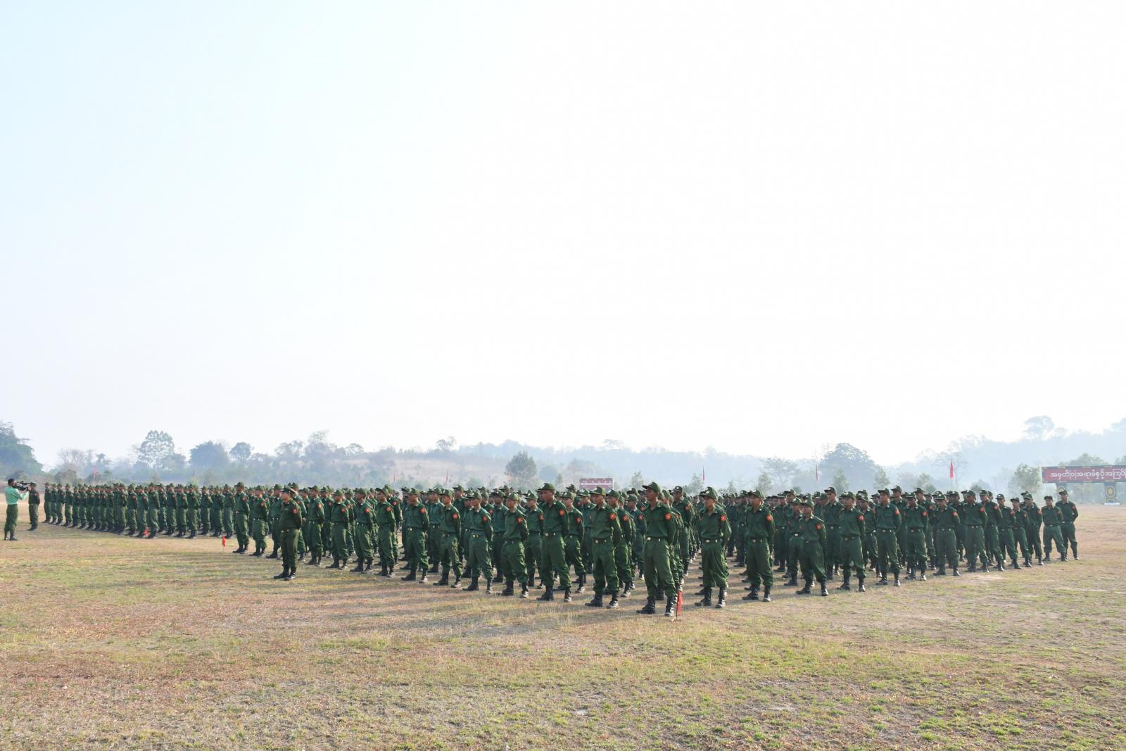 ရှမ်းပြည်နယ်(တောင်ပိုင်း)၊ ရပ်စောက်မြို့နယ်၊ ဗထူးတပ်မြို့ရှိ တပ်မတော်(ကြည်း) ဗိုလ်သင်တန်းကျောင်းရှိ စစ်ရေးပြကွင်း၌ ယနေ့နံနက် ၇ နာရီ ၃၀ မိနစ်က ပြည်သူ့စစ်မှုထမ်း သင်တန်းအမှတ်စဉ်(၁၁) ဖွင့်ပွဲပြုလုပ်ခဲ့ရာ ရှမ်းပြည်နယ်အစိုးရအဖွဲ့မှ တိုင်းရင်းသားရေးရာဝန်ကြီး ဦးအောင်ကြည်ဝင်း၊ တပ်မတော်(ကြည်း) ဗိုလ်သင်တန်းကျောင်းမှ ကျောင်းအုပ်ကြီး ဗိုလ်မှူးချုပ် နိုင်ဝင်းအောင်နှင့်တပ်မတော်အရာရှိများ၊ မြို့နယ်စီမံအုပ်ချုပ်ရေးအဖွဲ့ဝင်များ၊ မြို့နယ်အဆင့်ဌာနဆိုင်ရာအကြီးအကဲများနှင့်ဝန်ထမ်းများ၊ ရပ်ကွက်/ကျေးရွာအုပ်စုအုပ်ချုပ်ရေးမှူးများ၊ ပြည်သူ့စစ်မှုထမ်းသင်တန်းသားများတက်ရောက်ခဲ့ပြီး သင်တန်းဖွင့်ပွဲအခမ်းအနားတွင် တပ်မတော်(ကြည်း) ဗိုလ်သင်တန်းကျောင်းမှ ကျောင်းအုပ်ကြီးက ပြည်သူ့စစ်မှုထမ်း သင်တန်းသား (၈၄) ဦးအား သင်တန်းဖွင့်မိန့်ခွန်းပြောကြားခဲ့ကြောင်း သိရသည်။