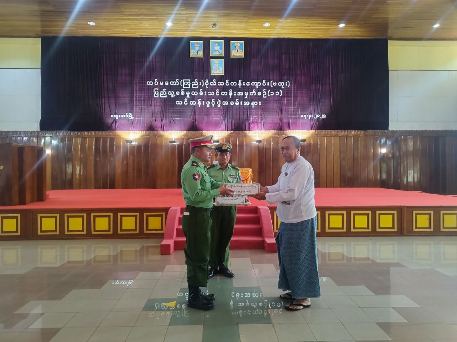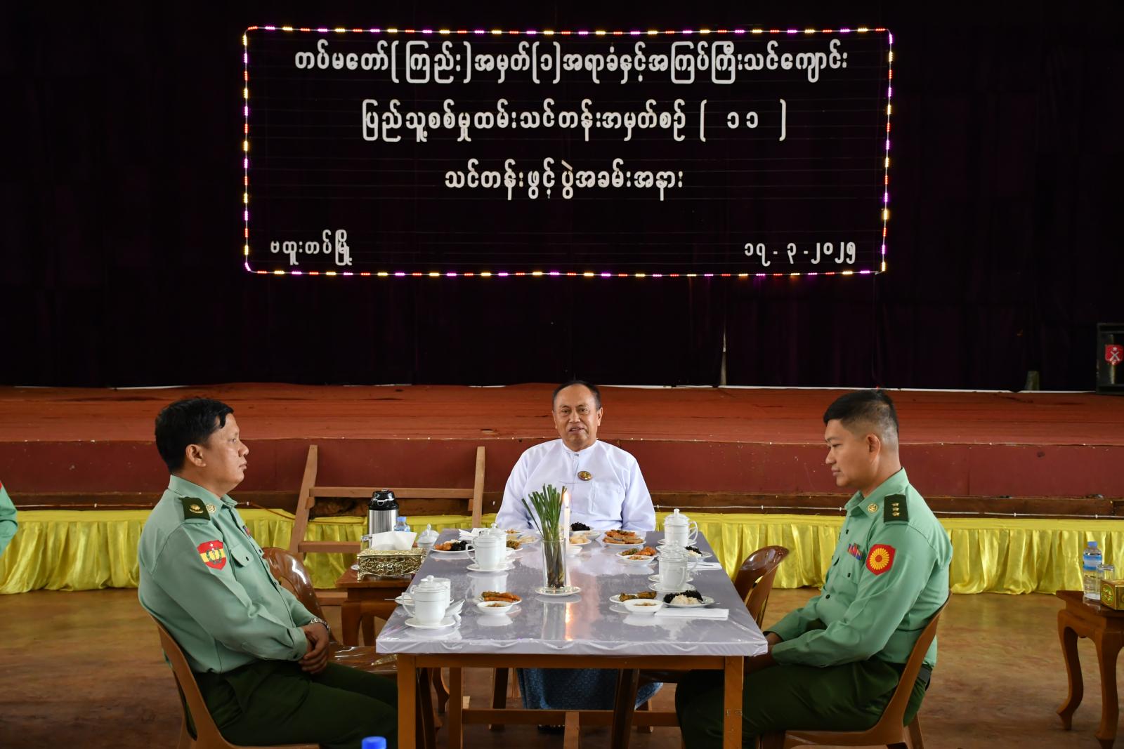 ထို့နောက် ပြည်နယ်ဝန်ကြီးနှင့်အတူတာဝန်ရှိသူများက စားရိပ်သာခန်းမ၌ ပြည်သူ့စစ်မှုထမ်းသင်တန်းသားများအား ကြိုဆိုဂုဏ်ပြုစကားပြောကြားကာ ဂုဏ်ပြုချီးမြှင်ငွေများပေးအပ်ခဲ့ပြီး ပြည်သူ့စစ်မှုထမ်းသင်တန်းသားများနှင့်အတူတကွ လက်ဖက်ရည်သုံးဆောင်ခဲ့ကြကြောင်း သိရသည်။