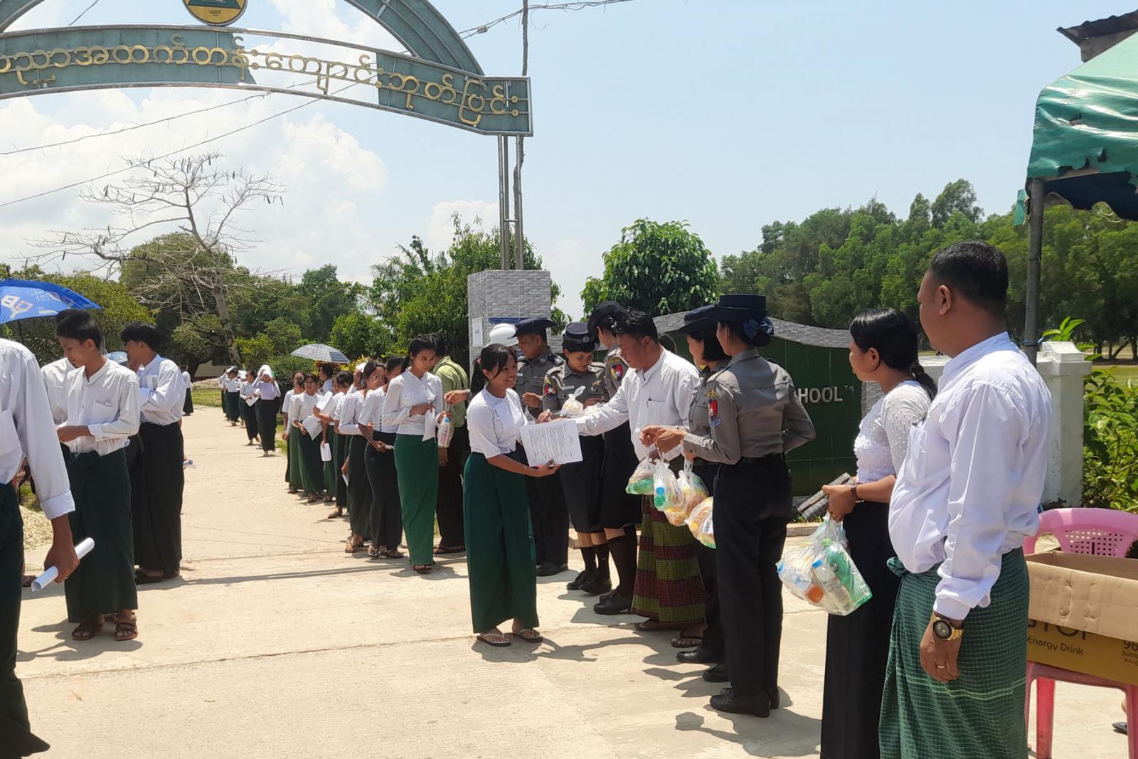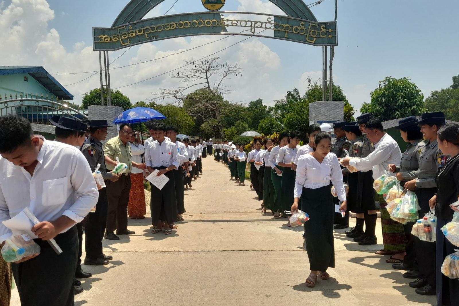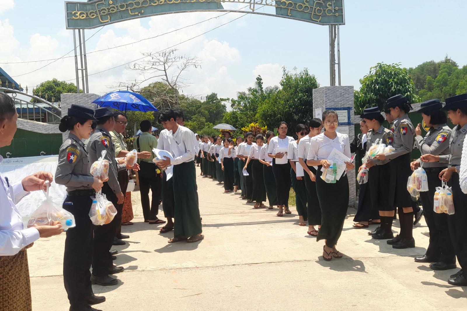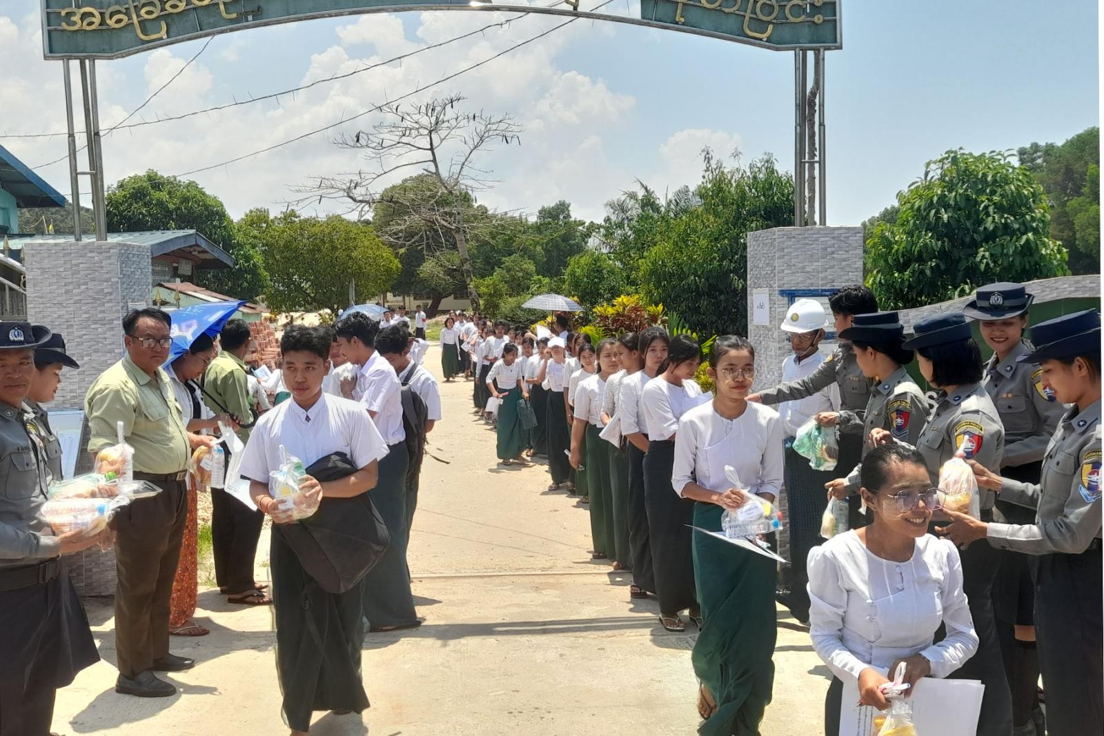 အဆိုပါ တက္ကသိုလ်ဝင်စာမေးပွဲ ဖြေဆိုသည့် ကျောင်းသား၊ ကျောင်းသူများအား ဘုတ်ပြင်းခရိုင် စီမံအုပ်ချုပ်ရေးအဖွဲ့၏ကြီးကြပ်မှုဖြင့် ဘုတ်ပြင်းခရိုင်ရဲတပ်ဖွဲ့မှူး ဒုတိယရဲမှူးကြီးဝင်းနိုင်၊ မြို့နယ်စီမံအုပ်ချုပ်ရေးအဖွဲ့ဥက္ကဋ္ဌ ဦးညီညီနှင့်အဖွဲ့ဝင်များ ခရိုင်/မြို့နယ်အဆင့် ဌာနဆိုင်ရာ တာဝန်ရှိသူများ၊ လူမှုရေးအသင်းအဖွဲ့များ ကျောင်းသား၊ ကျောင်းသူများကို အားဖြည့်အချိုရေနှင့် အာဟာရပြည့်မုန့်များ ဖြန့်ဝေပေးခဲ့ကြောင်း သိရသည်။