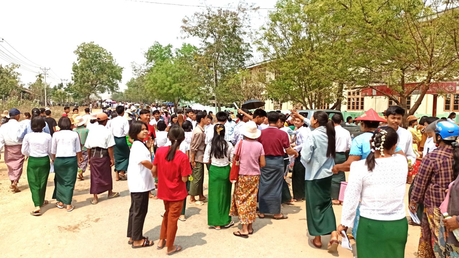 အဆိုပါ ကျောင်းသား၊ ကျောင်းသူများ ဖြေဆိုနိုင်ရေးအတွက် မြို့နယ်စီမံအုပ်ချုပ်ရေးအဖွဲ့နှင့် တာဝန်ရှိသူများက စောင့်ကြပ်ပေးပြီး မြို့နယ်အထွေထွေအုပ်ချုပ်ရေးဦးစီးဌာန၊ မြို့နယ်မိခင်နှင့် ကလေးစောင့်ရှောက်ရေးအသင်းနှင့် အမျိုးသမီးရေးရာအဖွဲ့တို့က အချိုရေဘူးများ ဝေငှခဲ့ကြောင်း သိရသည်။