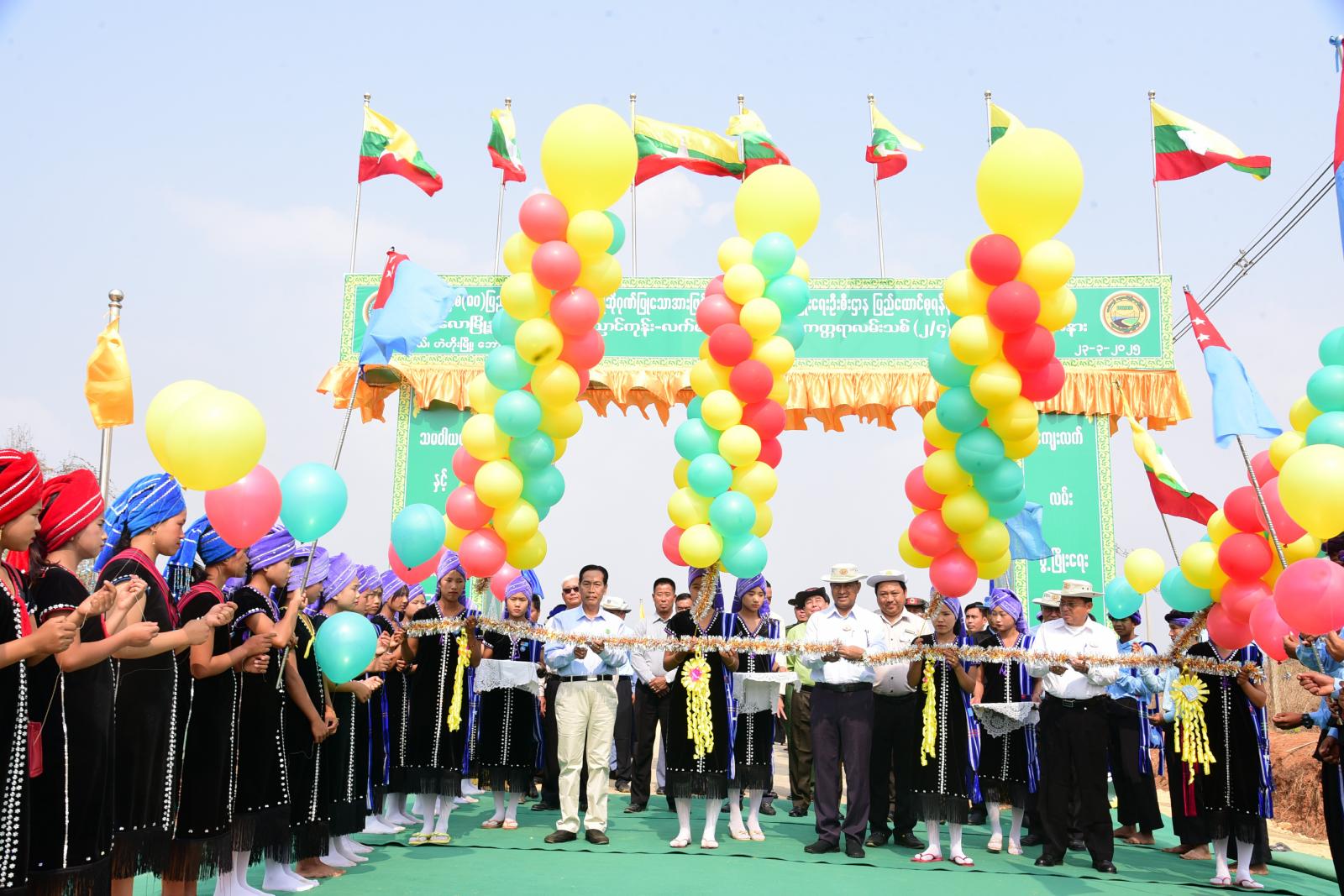 ဦးစွာ ပြည်နယ်ဝန်ကြီးချုပ် ဦးအောင်အောင်၊ ပြည်နယ်လမ်းပန်းဆက်သွယ်ရေးဝန်ကြီး ဦးနေဝင်းအောင်၊ ကျေးလက်လမ်းဖွံ့ဖြိုးရေးဦးစီးဌာန(ရုံးချုပ်)မှ ဒုတိယညွှန်ကြားရေးမှူးချုပ် ဦးနေဦး တို့က ညောင်ကုန်းလက်မောင်းကွေးလမ်းကတ္တရာလမ်းသစ်(၂/၄)မိုင်ကို ဖဲကြိုးဖြတ်ဖွင့်လှစ်သည်။