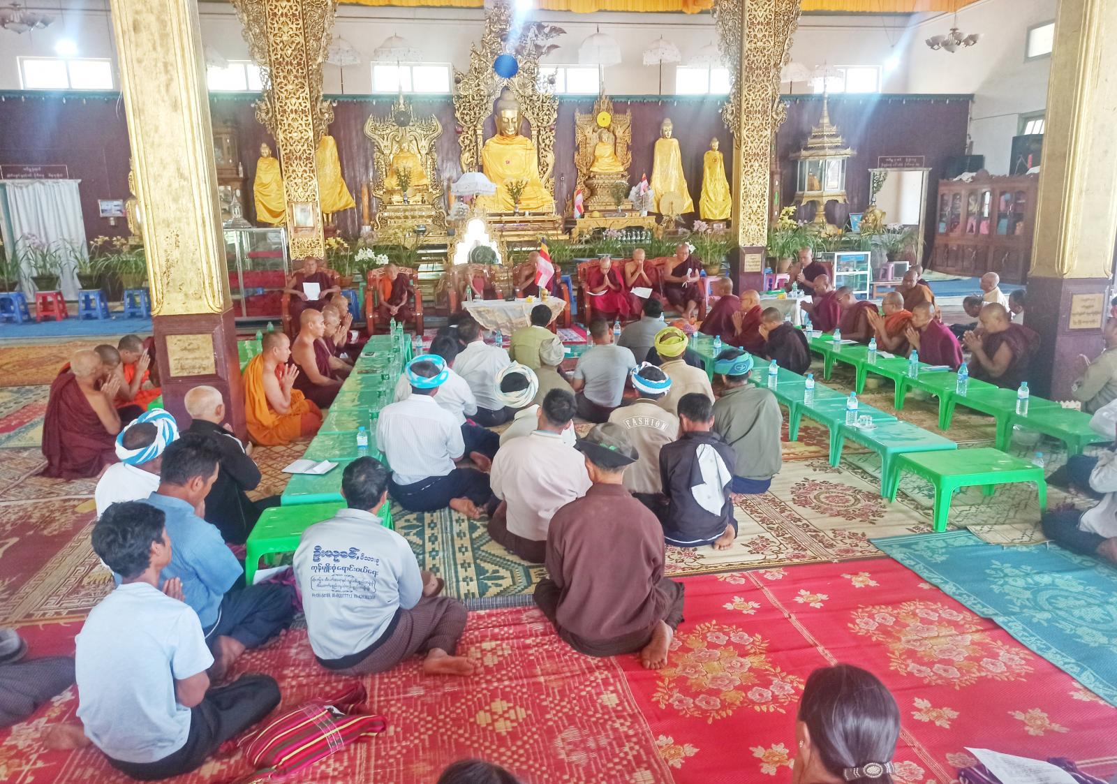 အစည်းအဝေးတွင် ရင်းမှီးပရိယတ္တိစာသင်တိုက် ဩဝါဒစရိယဆရာတော်ကြီး ဘဒ္ဒန္တဝါယာမနှင့် မြို့နယ်သံဃနာယကအဖွဲ့ဥက္ကဋ္ဌ တီကျစ်မြို့မကျောင်းတိုက် ဆရာတော် ဘဒ္ဒန္တဝိလာဘတို့က ဩဝါဒဂါထာမြွက်ကြားတော်မူပြီး၊ မြို့နယ်စီမံအုပ်ချုပ်ရေးအဖွဲ့ဥက္ကဋ္ဌ ဦးတင့်ဇော်ထက်က အစည်းအဝေးနှင့် ဆက်စပ်သည့် ကိစ္စရပ်များကို တင်ပြလျှောက်ထားခဲ့သည်။