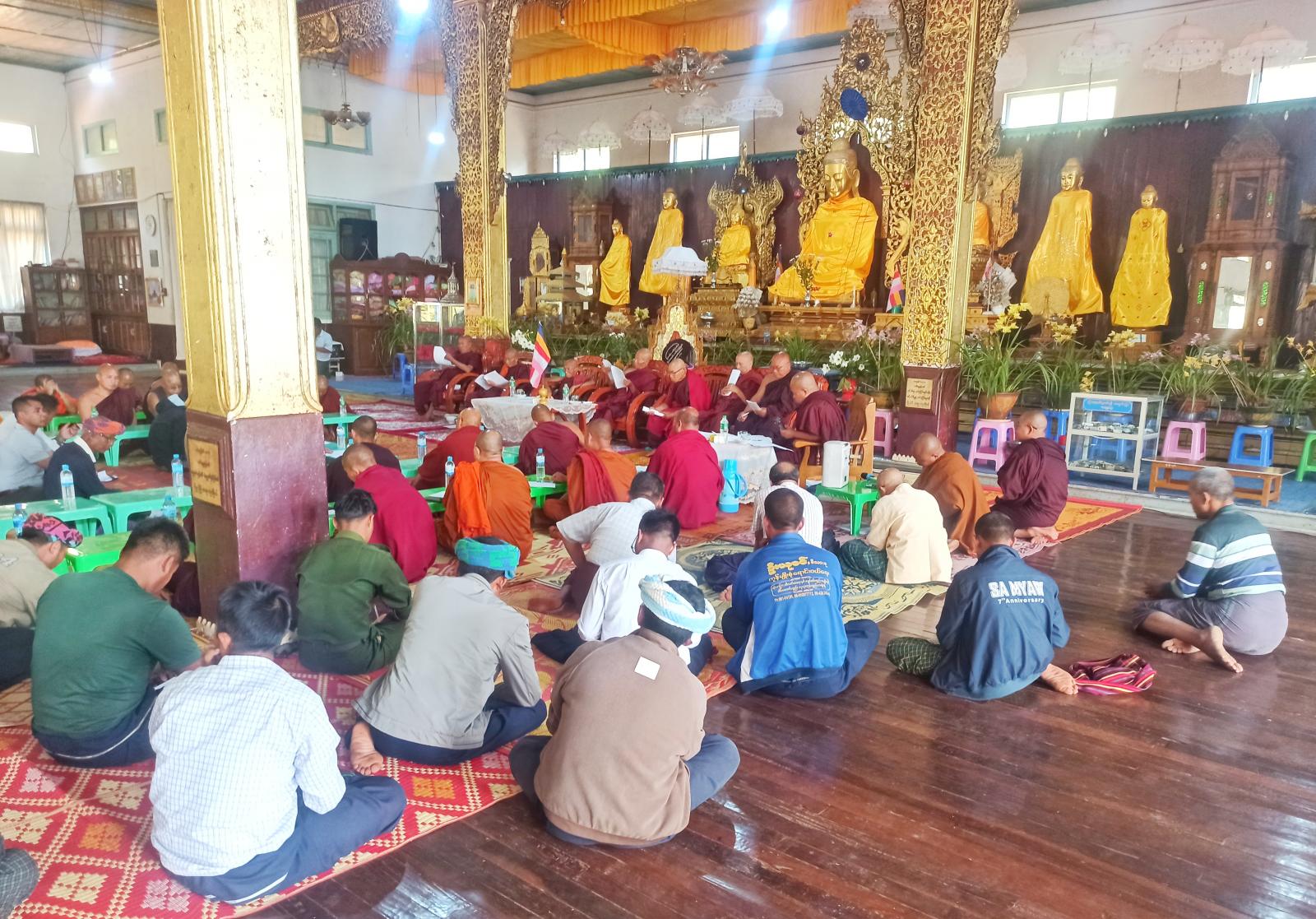 ထို့နောက် ရင်းမှီးပရိယတ္တိစာသင်တိုက် ဂေါပကဥက္ကဋ္ဌ ဒေါက်တာခွန်အောင်မြင့်က အစိုးရပါဠိပထမပြန်စာမေးပွဲအတွက် ဆောင်ရွက်သွားမည့် လုပ်ငန်းအခြေအနေများ တင်ပြလျှောက်ထားပြီး၊ မြို့နယ်သံဃနာယကအဖွဲ့ဝင် ဆရာတော်များ၊ ပင့်ဖိတ်ထားသော ဆရာတော်များက အစည်းအဝေး အထွေထွေဆွေးနွေးချက်များကို ရနိုင်သည့် အတည်ပြုဆွေးနွေးချက်များအား အတည်ပြုပေးခဲ့ကြောင်း၊ ထို့နောက် မြို့နယ်သံဃနာယကအဖွဲ့အကျိုးတော်ဆောင် မြသိန်းတန်ပရိယတ္တိစာသင်တိုက် ဆရာတော် ဘဒ္ဒန္တမင်္ဂလက စာဖြေသံဃာတော်များအား အာရုဏ်ဆွမ်း၊ နေ့ဆွမ်းဆွမ်းအလှူရှင်စာရင်းများ ဖတ်ကြားခဲ့သည်။