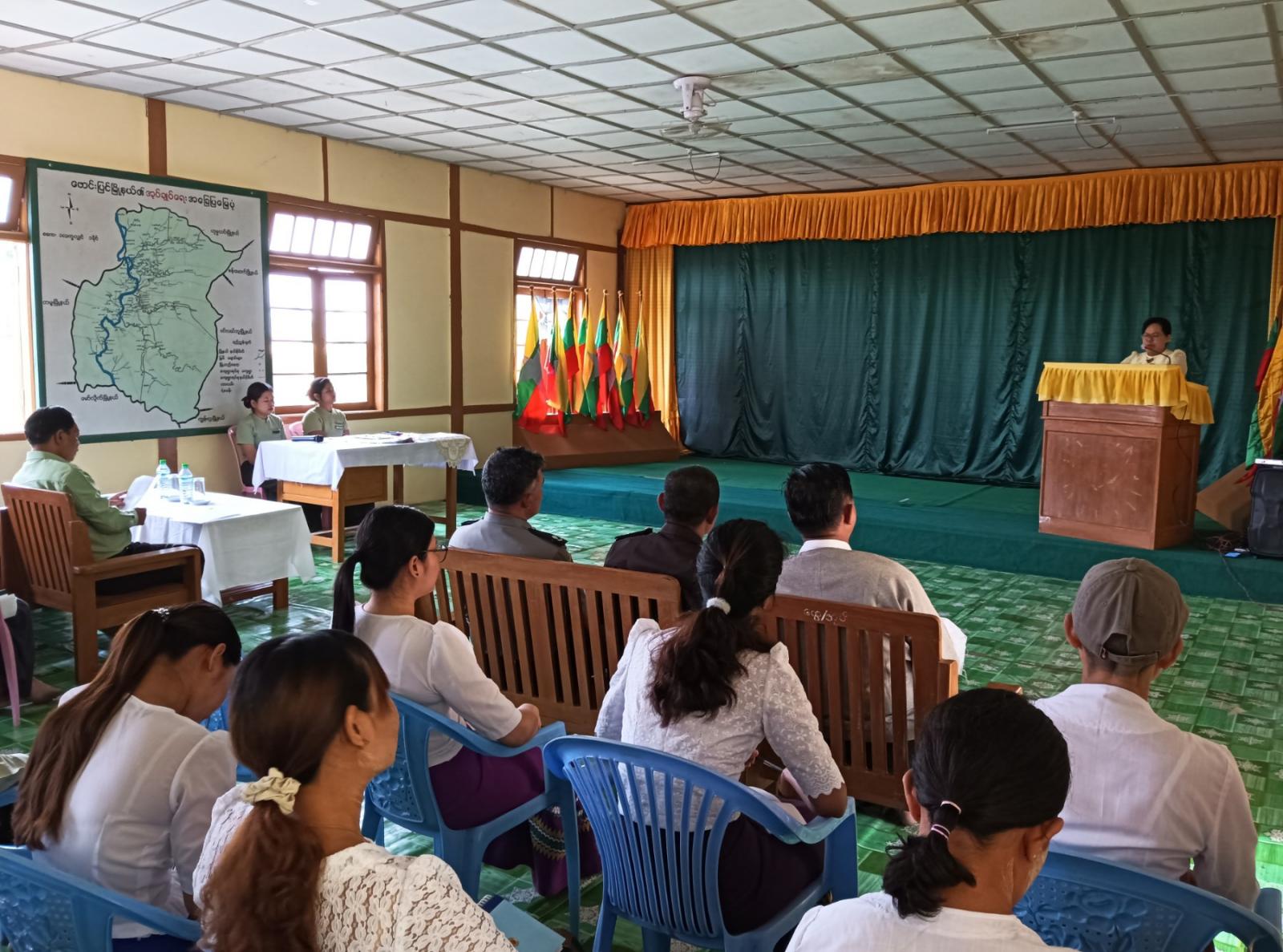 ရှေးဦးစွာ မြို့နယ်စီမံအုပ်ချုပ်ရေးအဖွဲ့ဥက္ကဋ္ဌ၊ မြို့နယ်အထွေထွေအုပ်ချုပ်ရေးမှူး ဦးတင်ဦးကျော်က စီမံကိန်းလုပ်ငန်းများနှင့်ပတ်သက်၍ လမ်းညွှန်အမှာစကားပြောကြားပြီး မြို့နယ်စီမံကိန်းရေးဆွဲရေးဦးစီးဌာန၊ လက်ထောက်ထောက်ညွှန်ကြားရေးမှူး ဒေါ်သီတာဝင်းက စီမံကိန်းဆိုင်ရာလုပ်ငန်းများနှင့်ပတ်သက်၍ ရှင်းလင်းပြောကြားသည်။