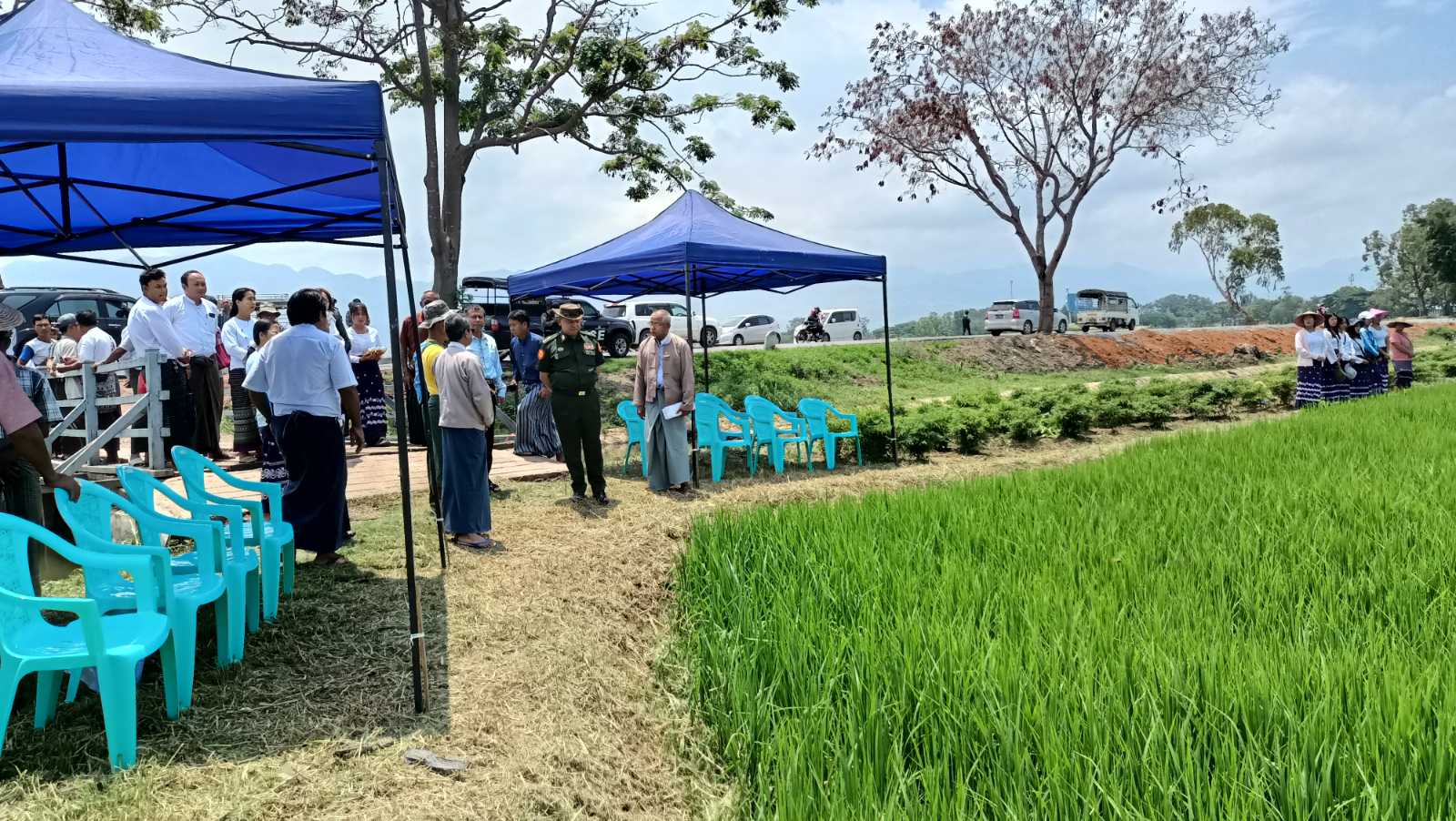 ရှမ်းပြည်နယ်အစိုးရအဖွဲ့ဝင်၊ ပြည်နယ်လုံခြုံရေးနှင့်နယ်စပ်ရေးရာဝန်ကြီး ဗိုလ်မှူးကြီး စိန်ဝင်းသည် ရှမ်းပြည်နယ်စိုက်ပျိုးရေးဦးစီးဌာန၊ ဒုတိယပြည်နယ်ဦးစီးမှူး၊ ခရိုင်/မြို့နယ် စိုက်ပျိုးရေးဦးစီးဌာနမှ ဝန်ထမ်းများနှင့်အတူ ယမန်နေ့ နံနက် ၁၁ နာရီက တောင်ကြီးမြို့နယ်၊ တာယောသုတေသနခြံနှင့် ညောင်ရွှေမြို့နယ် စိုက်ပျိုးရေးဦးစီးဌာနတို့မှ ဆောင်ရွက်လျက်ရှိသည့် လုပ်ငန်းများကို ကွင်းဆင်းကြည့်ရှုစစ်ဆေးခဲ့သည်။