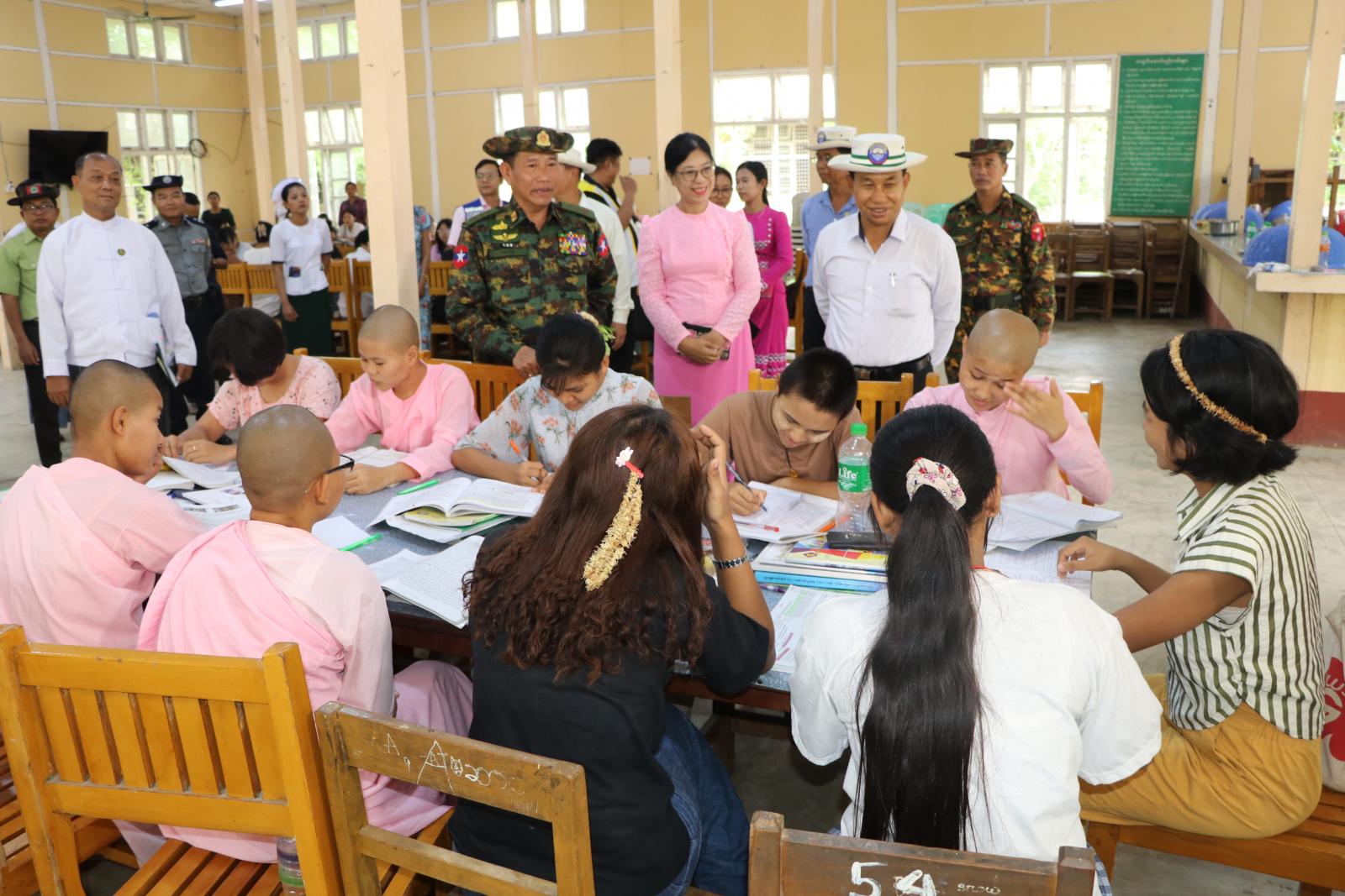 ထို့နောက် တိုင်းဒေသကြီးဝန်ကြီးချုပ် ဦးမြတ်ကျော်၊ ကာကွယ်ရေးဦးစီးချုပ်ရုံး (ကြည်း)မှ ဒုတိယဗိုလ်ချုပ်ကြီး သက်ပုံနှင့်တာဝန်ရှိသူများသည် မွန်းလွဲပိုင်းတွင် ၂၀၂၅ ခုနှစ်၊ တက္ကသိုလ်ဝင်စာမေးပွဲ ပြန်လည်ဖြေဆိုကြမည့် စစ်ကိုင်းမြို့ပေါ်ရှိ ကျောင်းသား/ ကျောင်းသူများအား စစ်ကိုင်းပညာရေးတက္ကသိုလ်အတွင်းရှိ သတ်မှတ်စာသင်ဆောင်များ တွင်စခန်းသွင်း သင်ကြားပေးနေမှုများအား လိုက်လံကြည့်ရှုခဲ့ကြပြီး စခန်းသွင်းသင်ကြား နေစဉ်ကာလအတွင်း ဆရာ၊ဆရာမများနှင့် ကျောင်းသား၊ကျောင်းသူများ အုပ်ချုပ်၊ ထောက်ပံ့ရေး၊ နေထိုင်စားသောက်ရေး အဆင်ပြေစေရန်နှင့် ကျန်းမာရေးများကောင်း မွန်စေရန်တို့အတွက် တာဝန်ရှိသူများမှ အလေးထားဆောင်ရွက်သွားကြရန် မှာကြားခဲ့သည်။