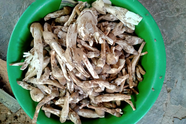“ ဒီဒေသမှာ ငှက်စွတ်မှိုက ကဆုန်လပြည့်ကျော်တာနဲ့ မိုးရွာသွန်းပြီးနောက်နှစ်ရက်လောက် ပူအိုက်ခါစအချိန်မှာ အများဆုံးထွက်ပေါ်လေ့ရှိပြီး ရှာဖွေနှုတ်ယူရတာပါ၊ ယခုလိုမှိုလှိုင်လှိုင်ပေါ်တဲ့ အချိန်မှာ မှိုရှာတွေ့များတဲ့နေ့ဆိုရင်တစ်ရက်ထဲ တစ်ပိဿာကျော်ရရှိပါတယ်၊ ရွာမှာဖောက်သည် စျေးက မှို ၁၀ သားကို ၁,၀၀၀ ကျပ်နဲ့ရောင်းချရပါတယ်၊ မှိုပေါ်ချိန်ကရက်တိုတော့ ပေါ်ဦးပေါ်ဖျားဆိုရင် စျေးပိုရပြီး တစ်ပိဿာကို ငွေကျပ် ၁၅,၀၀၀ ကျော်အထိရောင်းချရပါတယ် ဒီမှိုကတစ်နှစ်မှတစ်ခါပဲ ပေါ်တာ ဒီနှစ်စျေးကောင်းရတော့ မှိုရှာရတာအဆင်ပြေပါတယ်”ဟု နောင်ခမ်းကျေးရွာနေ မှိုနှုတ် ရောင်းချသူ နန်းခမ်းအိမ်ကပြောသည်။