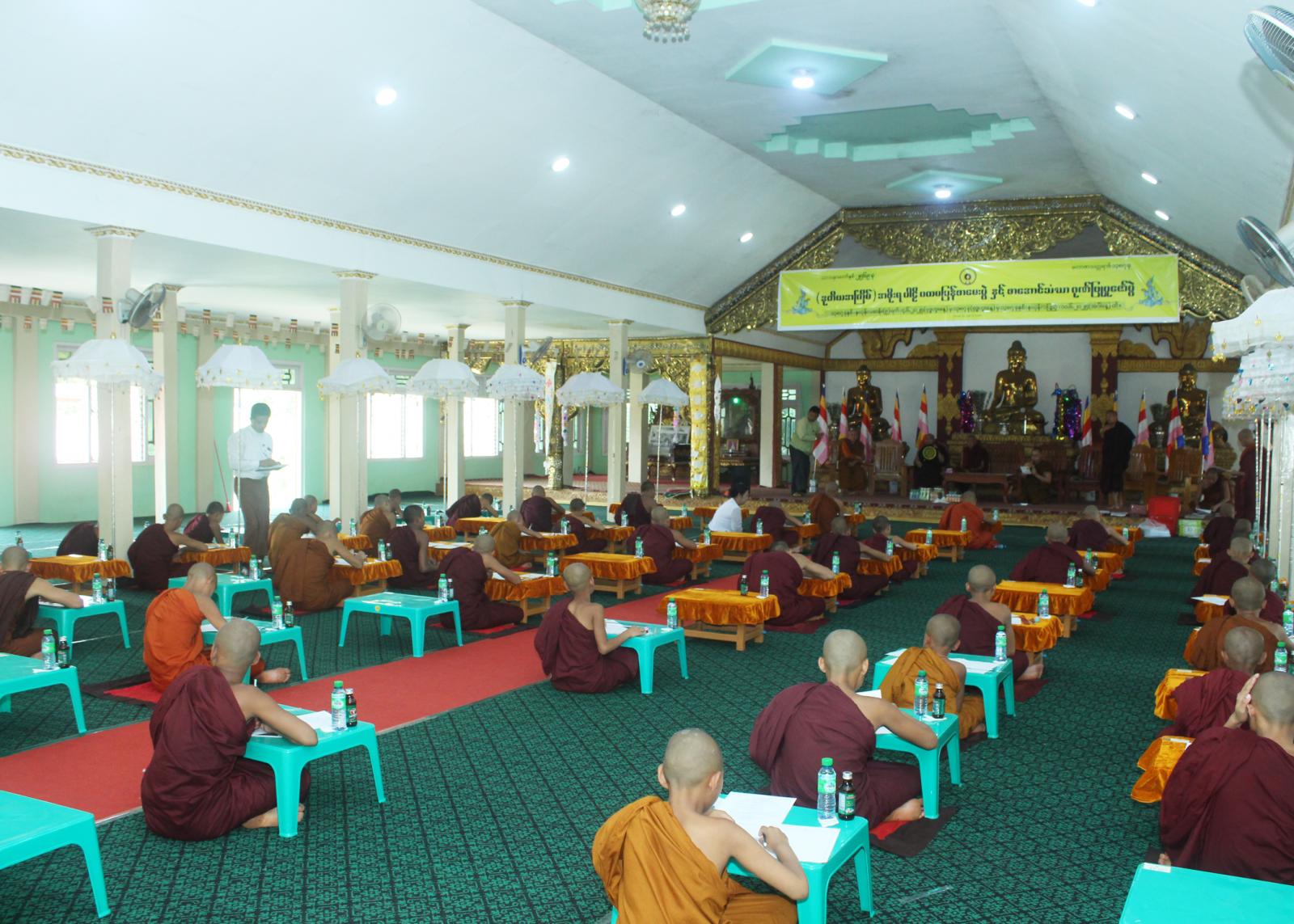 ထို့နောက် စာမေးပွဲကြီးကြပ်ရေးဆရာတော်များ၊ မြို့နယ်စီမံအုပ်ချုပ်ရေးအဖွဲ့ဥက္ကဋ္ဌ ဦးနေမျိုးထွန်းနှင့် တာဝန်ရှိသူများက အတန်းစဉ်အလိုက် မေးခွန်းပုစ္ဆာများကို ဝေငှပေးခဲ့ပြီး စာမေးပွဲစတင်ဖြေဆိုခဲ့သည်။