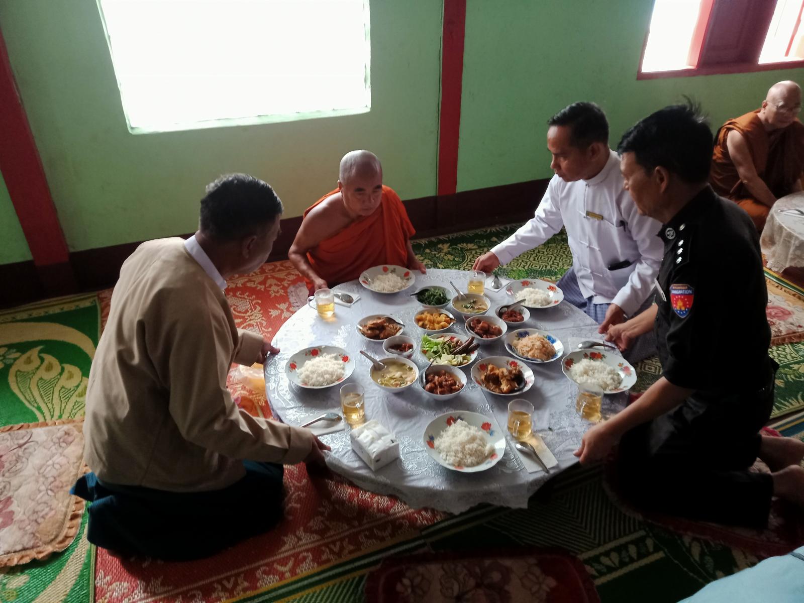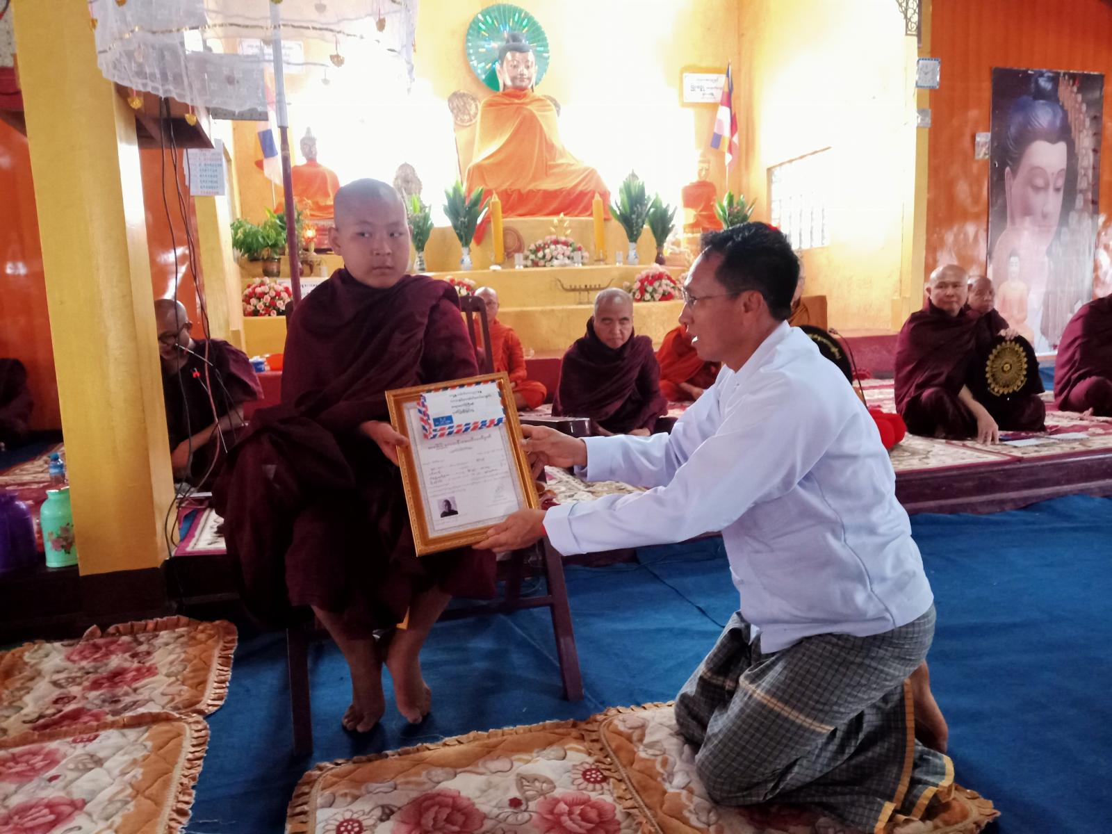 အခမ်းအနားသို့ လွိုင်လင်ခရိုင်စီမံအုပ်ချုပ်ရေးအဖွဲ့ဥက္ကဋ္ဌ ဦးကြည်မြင့်နှင့် အဖွဲ့ဝင်များ၊ မြို့နယ်စီမံအုပ်ချုပ်ရေးအဖွဲ့ဥက္ကဋ္ဌ ဦးသိန်းထွဋ်နှင့် ခရိုင်/မြို့နယ်အဆင့်ဌာနဆိုင်ရာများ၊ စာမေးပွဲအောင် သံဃာတော်များ တက်ရောက်ခဲ့ကြသည်။ ဦးစွာ အခမ်းအနားကို နမောတဿသုံးကြိမ် ရွတ်ဆိုဖွင့်လှစ်ပြီးနောက် ဆရာတော်သံဃာတော်များအား ဩကာသကန်တော့ချိုးဖြင့် ကန်တော့ကာ လွိုင်လင်မြို့ဓာတ်တော်ကျောင်းတိုက်ဆရာတော် ဘဒ္ဒန္တ ဒေါက်တာပညာနန္ဒ(အဂ္ဂမဟာပဏ္ဍိတ)ဆရာတော်ကြီးထံမှ ငါးပါးသီလခံယူဆောက်တည်ကြသည်။ ထို့နောက် ဆရာတော်သံဃာတော်များ ရွတ်ပွားသည့် ပရိတ်တရားတော်များနာယူကြသည်။ ဆက်လက်၍ ခရိုင်စီမံအုပ်ချုပ်ရေးအဖွဲ့ဥက္ကဋ္ဌ ဦးကြည်မြင့်မှ သာသနာရေးဆိုင်ရာများ လျှောက်ထားခဲ့သည်။ ယင်းနောက် အစိုးရပါဠိပထမပြန်စာဖြေပွဲကြီးကြပ်ဆရာတော်များအား နဝကမ္မအလှူငွေများဆက်ကပ်ခြင်းနှင့် စာအောင်သံဃာများအား အောင်လက်မှတ်နှင့် ဝတ္ထုငွေများကို ခရိုင်/မြို့နယ်အုပ်ချုပ်ရေးမှူးများနှင့် ဌာနဆိုင်ရာအကြီးအကဲများက ဆက်ကပ်လှူဒါန်းခဲ့ကြပြီးနောက် လှူဒါန်းမှုအစုစုတို့အတွက် ရေစက်သွန်းချအမျှပေးဝေကြကာ အခမ်းအနားကို ဗုဒ္ဓသာသနံစိရံတိဋ္ဌတုသုံးကြိမ်ရွတ်ဆိုဆုတောင်းပြီး အခမ်းအနား ရုတ်သိမ်းခဲ့ကြကြောင်း သိရသည်။ ယင်းနောက် ဆရာတော်သံဃာတော်များအား နေ့ဆွမ်း ဆက်ကပ်ကြသည်။