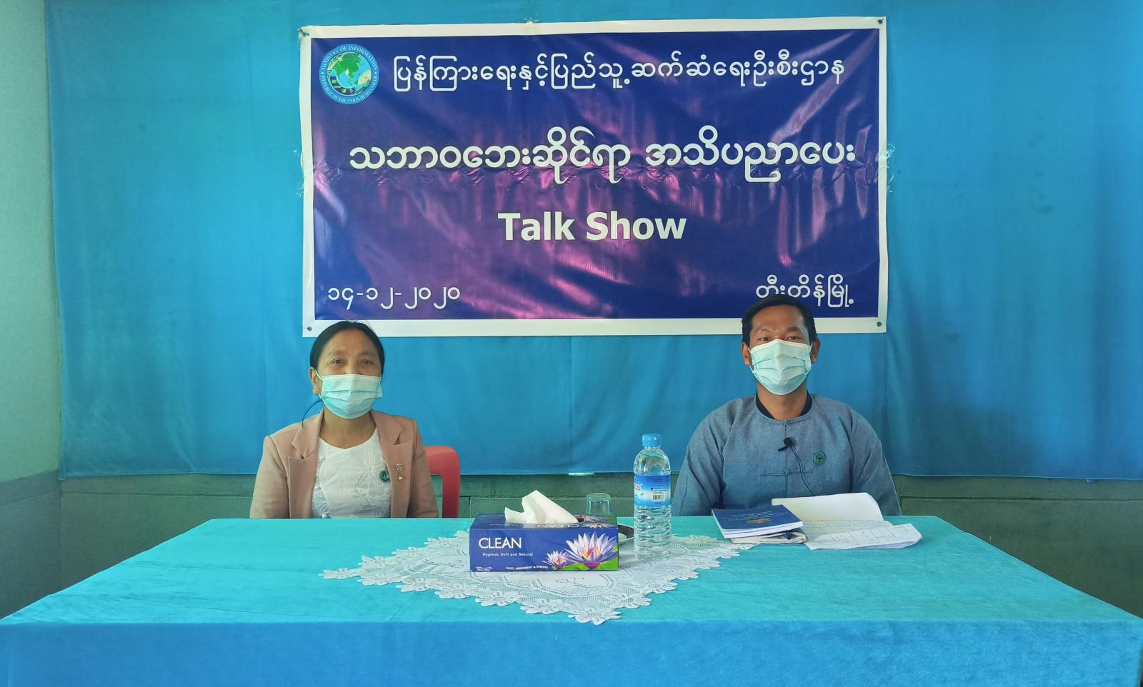 ချင်းပြည်နယ်၊ တီးတိန်မြို့နယ်ပြန်ကြားရေးနှင့်ပြည်သူ့ဆက်ဆံရေးဦးစီးဌာန Community Centre ခန်းမ၌ သဘာဝဘေးဆိုင်ရာ အသိပညာပေး Talk Show ကို ယနေ့ နံနက် ၁၀ နာရီခွဲကပြုလုပ်သည်။