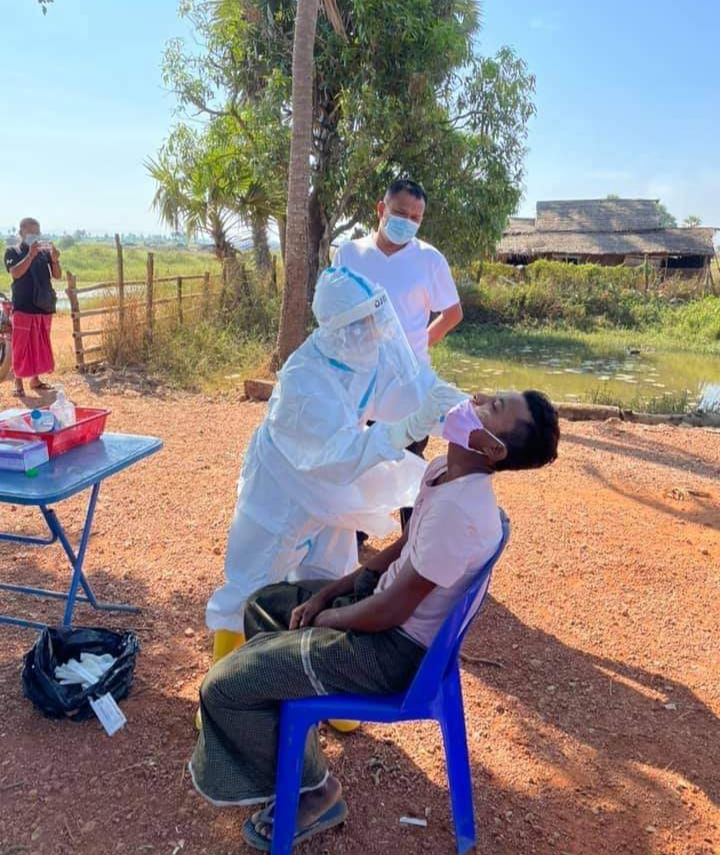 မွန်ပြည်နယ် မော်လမြိုင်ခရိုင် မုဒုံမြို့နယ်တွင် အနယ်နယ်အရပ်ရပ်မှ ရောက်ရှိ လာသည့် ရွှေ့ပြောင်းလုပ်သားများအား ယမန်နေ့နံနက်(၁၀)နာရီက တံခွန်တိုင်ကျေးရွာ ရှိ ဆန်ကြာဇံ အလုပ်ရုံနှင့် မြို့မ(၂)ရပ်ကွက် ကော့ပရံလမ်းဟောင်းအုတ်ဖို နေရာများတို့၌ RDT Test Kit ဖြင့် နှာခေါင်းနှင့် အာခေါင်တို့ဖတ် နမူနာရယူ၍ ကိုဗစ်- ၁၉ ရောဂါပိုး ရှိ/မရှိ စစ် ဆေးခဲ့သည်။