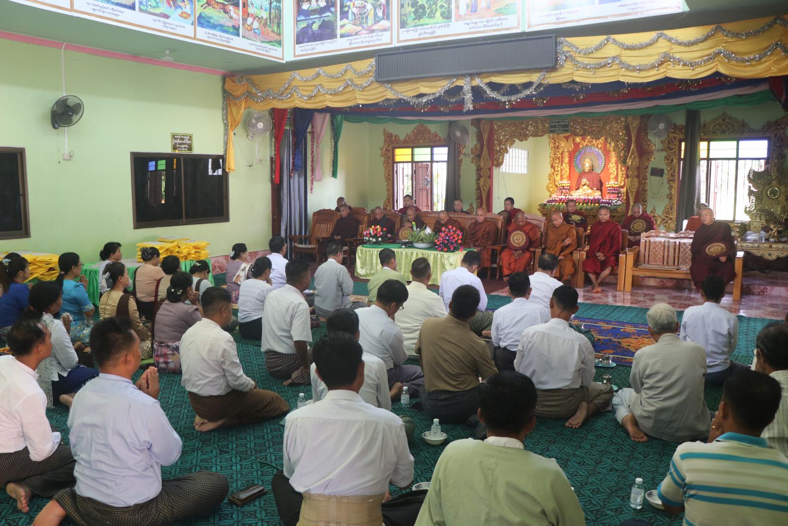 ရှေးဦးစွာ နမောတဿ (၃)ကြိမ်ရွက်ဆို ဘုရားကန်တော့၍ ထေရဝါဒဗုဒ္ဓသာသနာပြု(ဗဟို)ကျောင်းတိုက်ဆရာတော် အဂ္ဂမဟာသဒ္ဓမ္မဇောတိကဓဇဘဒ္ဒန္တနန္ဒောဘာသထံမှ ပရိတ်သတ်များက ငါးပါးသီလ ခံယူဆောက်တည်ခဲ့ကြသည်။ ထို့နောက် သံဃာတော်အရှင်သူမြတ်များက ပရိတ်တရားတော်များ ရွတ်ဖတ်သရဇ္စျာယ်ခဲ့သည်။ ယင်းနောက် မြို့နယ်စီမံအုပ်ချုပ်ရေးအဖွဲ့ဥက္ကဋ္ဌ ဦးလှမျိုးနှင့် ဌာနဆိုင်ရာများ၊အလှူရှင်များက သံဃာတော်အရှင်သူမြတ်တို့အား ဝါဆိုသင်္ကန်းနှင့် နဝကမ္မဝတ္ထုငွေများကို ဆပ်ကပ်လှူဒါန်းခဲ့ကြသည်။