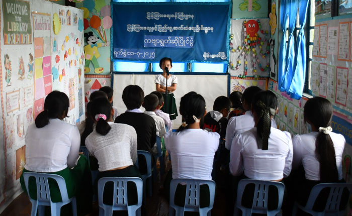 ရှမ်းပြည်နယ်(အရှေ့ပိုင်း)၊ မိုင်းဆတ်ခရိုင်၊ ပြန်ကြားရေးနှင့်ပြည်သူ့ဆက်ဆံရေးဦးစီးဌာန၊ ပြည်သူ့စာကြည့်တိုက်ရှိ ကလေးစာဖတ်ခန်း၌ ယနေ့နေ့လယ်ပိုင်းက ကဗျာရွတ်ဆိုပြိုင်ပွဲနှင့် ပုံပြောပြိုင်ပွဲ ကျင်းပပြုလုပ်ခဲ့ကြောင်း သိရသည်။