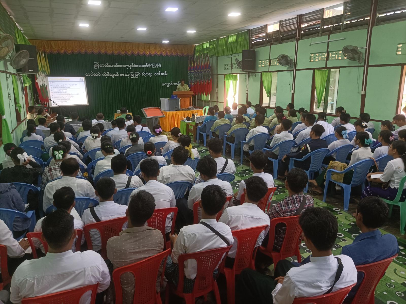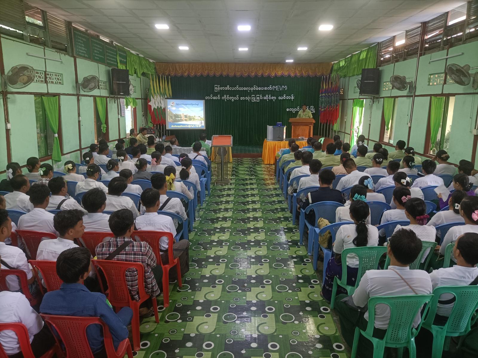 အခမ်းအနားတွင် မြို့နယ်အဆင့် မြန်မာအီလက်ထရောနစ်မဲပေးစက်(MEVM)ဆိုင်ရာလုပ်ငန်းအဖွဲ့ဥက္ကဋ္ဌ မြို့နယ်အုပ်ချုပ်ရေးမှူး ဦးကိုကိုဦးက အဖွင့်အမှာစကားပြောကြားခဲ့ပြီး၊ အတွင်းရေးမှူး မြို့နယ်ရွေးကောက်ပွဲအရာရှိ ဒေါ်စုမြတ်ထိုက်က မြန်မာအီလက်ထရောနစ် မဲပေးစက်(MEVM) တပ်ဆင်ကိုင်တွယ်အသုံးပြုခြင်းအား ပရိုဂျက်တာ(Powe Point)ဖြင့် ရှင်းလင်းပြောကြားခဲ့သည်။