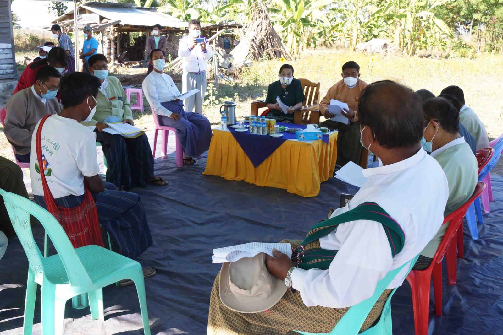 ဒီးမော့ဆိုမြို့နယ် စံပြ(၆)မိုင်ကျေးရွာအုပ်စု ဝမ့်လထွားကျေးရွာ(ရွှေပန်းတော)တွင် ယခင်က စိုက်ပျိုးရေး ဦးစီးဌာနမှ ငွေတောင်မျိုးသန့်ခြံအဖြစ် မြေ ၁၁၀ ဒသမ ၇၉ ဧက အသုံးပြုဆောင်ရွက်ခဲ့ပြီး ၄၉ ဒသမ ၂၃ ဧကကို နိုင်ငံတော်သို့ ပြန်လည်အပ်နှံကာ ကျေးရွာမြေအဖြစ် ၂၉ ဒသမ ၉၃ ဧက အသုံးပြုခဲ့ကြောင်း၊ ကျန်ရှိသော ယာမြေ ၁၉ ဒသမ ၃၀ ဧကကို တောင်သူ လေးဦးပိုင်ဆိုင်ကြောင်း တင်ပြလာမှုအပေါ် ၎င်းယာမြေပေါ်တွင် အဆိုပါ တောင်သူများ အမှန်တကယ် လုပ်ကိုင်ဆောင်ရွက်ခြင်း ရှိ/မရှိ စိစစ် ဆောင်ရွက်ခြင်းဖြစ်ပြီး မှန်ကန်ပါက ယာယီပုံစံ(၃) ပေးအပ်သွားမည်ဖြစ်ကြောင်း သိရသည်။