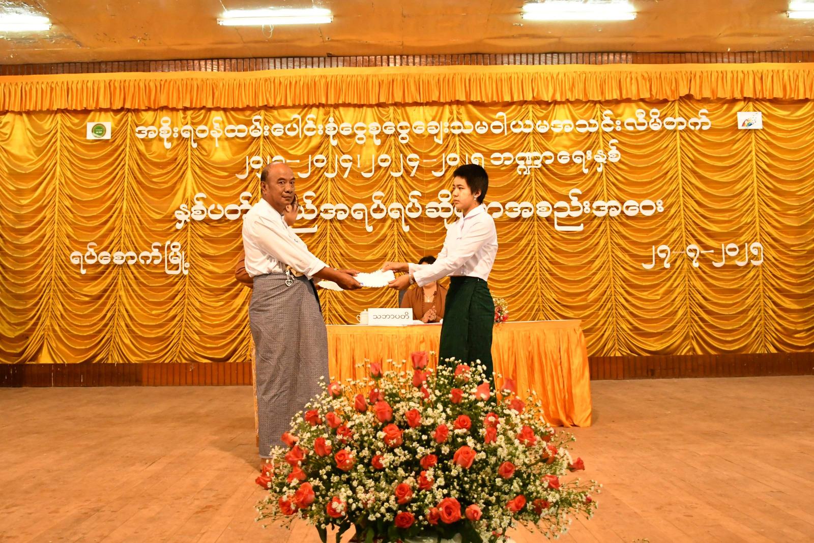 အသင်းသား(၁၁၃၅)ရှိရာမှ အစည်းအဝေးသို့ အသင်းသား (၉၄၀)ဦး တက်ရောက်ခဲ့ပြီး တစ်ဦးလျှင် (၁၀၀၀၀)ကျပ်နှုန်းနှင့် ဗလာမပါကံစမ်းမဲ စုစုပေါင်းကျပ်(၂၄၅)သိန်းတို့ကို ပေးအပ်ခဲ့ကာ ယခုဘဏ္ဍာရေးနှစ်အတွင်း စုဆောင်းငွေပေါ် အတိုးကျပ်(၂၄၃)သိန်းတို့ကို ပေးအပ်နိုင်ခဲ့ကြောင်း မြို့နယ်သမဝါယမဦးစီးဌာနမှ တာဝန်ရှိသူတစ်ဦးထံက သိရသည်။