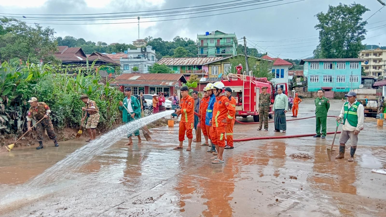 ရှမ်းပြည်နယ်(တောင်ပိုင်း)၊ ကလောမြို့တွင် မိုးအဆက်မပြတ်ရွာသွန်းပြီး တောင်ကျရေများ စီးဝင်မှုကြောင့် မြို့ပေါ်ရပ်ကွက် (၂) နှင့်ရပ်ကွက် (၄) တို့တွင် ဇူလိုင်လ ၂၈ ရက်နေ့တွင် ရေကြီး၊ ရေလျှံမှုများဖြစ်ပေါ်ခဲ့ပြီး ယမန်နေ့ နံနက်ပိုင်းမှ စတင်၍ ချောင်းရေများ ပြန်လည်ကျဆင်းသွားပြီဖြစ်၍ အမှတ်(၄)ရပ်ကွက်ရှိ ပျံကျဈေးဖွင့်လှစ်သည့် နေရာများအား စုပေါင်း သန့်ရှင်းရေး ဆောင်ရွက်လျက်ရှိကြောင်း သိရသည်။