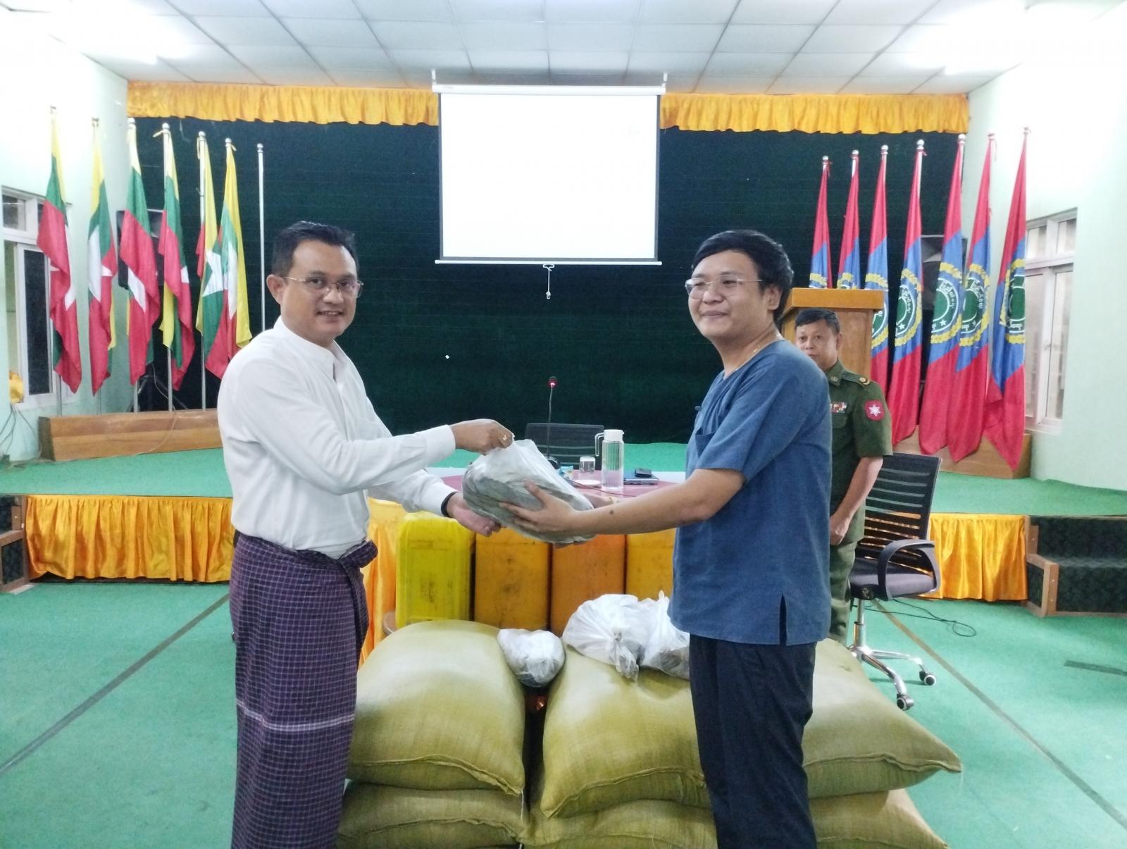 ထိုသို့ဆောင်ရွက်ပေးရာတွင် တောင်ငူမြို့နယ်သဘာဝဘေးအန္တရာယ်ဆိုင်ရာစီမံကွပ်ကဲမှုအဖွဲ့ ဥက္ကဋ္ဌဦးဉာဏ်လင်းအောင်(မြို့နယ်စီမံအုပ်ချုပ်ရေးအဖွဲ့ဥက္ကဋ္ဌ)က အမှာစကားပြောကြားပြီး တောင်ငူမြို့နယ်ရှိ ရေဘေးရှောင်စခန်း(၂၉)ခု၊ အိမ်ထောင်စု(၃၀၀၂)၊ လူဦးရေ (၁၁၉၄၂) ဦးတို့အတွက် ဆန်အိတ်(၂၀၃) အိတ်၊ ဆီ (၂၉) ပိဿာ၊ ငါးခြောက် (၂၉) ပိဿာတို့ကို သက်ဆိုင်ရာ ရေဘေးရှောင်စခန်းများရှိ တာဝန်ခံများအား ထုတ်ပေးခဲ့ကြောင်းသိရသည်။
