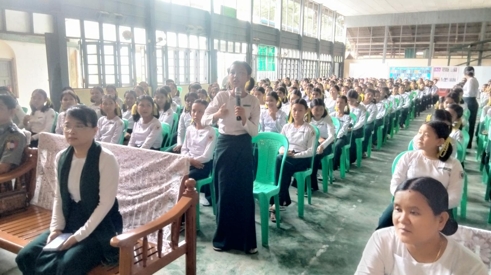 အဆိုပါအသိပညာပေးဟောပြောပွဲကို အခြေခံပညာအထက်တန်းကျောင်းများဖြစ်ကြသည့် အ.ထ.က(၈) မှ ကျောင်းသူ ၃၀၀ ဦး၊ အ.လ.က(၁)မှကျောင်းသား/သူ ၃၀ ဦး၊ အ.ထ.က(၁၀)မှ ကျောင်းသား/သူ ၂၅၀ ဦး၊ အ.ထ.က(၄)မှ ကျောင်းသား/သူ ၂၅၀ ဦး၊ စုစုပေါင်း ကျောင်းသား/သူ ( ၈၃၀ )ဦးအားအသိပညာပေးခဲ့ကြောင်း သိရသည်။
