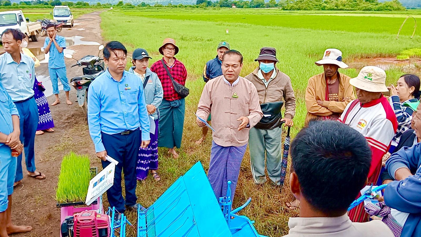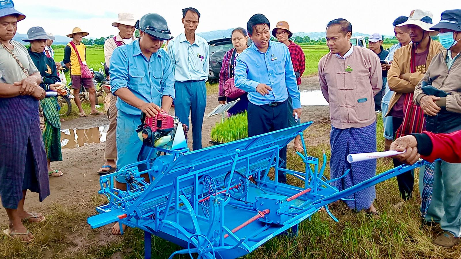ဟဲဟိုးမြို့၊ ပုန်းအင်းကျေးရွာ၌ ကောက်စိုက်စက်ဖြင့် စပါးစိုက်ပျိုးခြင်းဖြင့် လယ်ယာလုပ်ငန်းခွင်တွင် လုပ်သားရှားပါးမှုပြသာနာများ လျော့ချနိုင်မှု၊ အချိန်ကုန်သက်သာပြီး ပြီးစီးမှုမြန်ဆန်သောကြောင့် ရာသီအချိန်မှီ စိုက်ပျိုးပြီးစီးမှု၊ မျိုးစပါးကုန်ကျမှု လျော့နည်းခြင်းနှင့် စိုက်ပျိုးစရိတ်သက်သာခြင်းကြောင့် တစ်ဧကစိုက်ပျိုးစရိတ်သက်သာခြင်း၊ စိုက်ပျိုးနည်းစနစ်မှန်ကန်မှုကြောင့် အထွက်နှုန်းပိုမိုတိုးတက်၍ ဝင်ငွေများတိုးတက်စေရန်နှင့် တောင်သူများလက်တွေ့ကျကျ သိရှိနားလည်ပြီး ကောက်စိုက်စက်ဖြင့် စပါးစိုက်ပျိုးခြင်းအား တွင်ကျယ်စွာ အသုံးပြုနိုင်ရန်ရည်ရွယ်၍ စိုက်ပျိုးရေးဦးစီးဌာနနှင့် စက်မှုလယ်ယာဦးစီးဌာန၊ အောင်ပန်းမြို့အမှတ်(၆၅)စက်မှုလယ်ယာစခန်းတို့မှ ပူးပေါင်းကျင်းပသည့် လက်ဆွဲကောက်စိုက်စက်ဖြင့် မိုးစပါးစိုက်ပျိုးနည်း ကွင်းသရုပ်ပြသပွဲကို ယမန်နေ့နံနက် ၉ နာရီခွဲက ရှမ်းပြည်နယ်တောင်ပိုင်း၊ ကလောမြို့နယ်၊ ဟဲဟိုးမြို့၊ ဝါးရုံပင်ကျေးရွာအုပ်စု၊ ပုန်းအင်း ကျေးရွာရှိ တောင်သူ ဦးကျော်နိုင်စိုး၏ လယ်မြေ၌ ကျင်းပပြုလုပ်ခဲ့ရာ စက်မှုလယ်ယာဦးစီးဌာန၊ မြို့နယ်ဦးစီးအရာရှိနှင့် ဝန်ထမ်းများ၊ မြို့နယ်စိုက်ပျိုးရေးဦးစီးဌာန ဦးစီးအရာရှိနှင့် ဝန်ထမ်းများ၊ ပုန်းအင်းကျေးရွာဒေသခံတောင်သူများ တက်ရောက်ခဲ့ကြသည်။