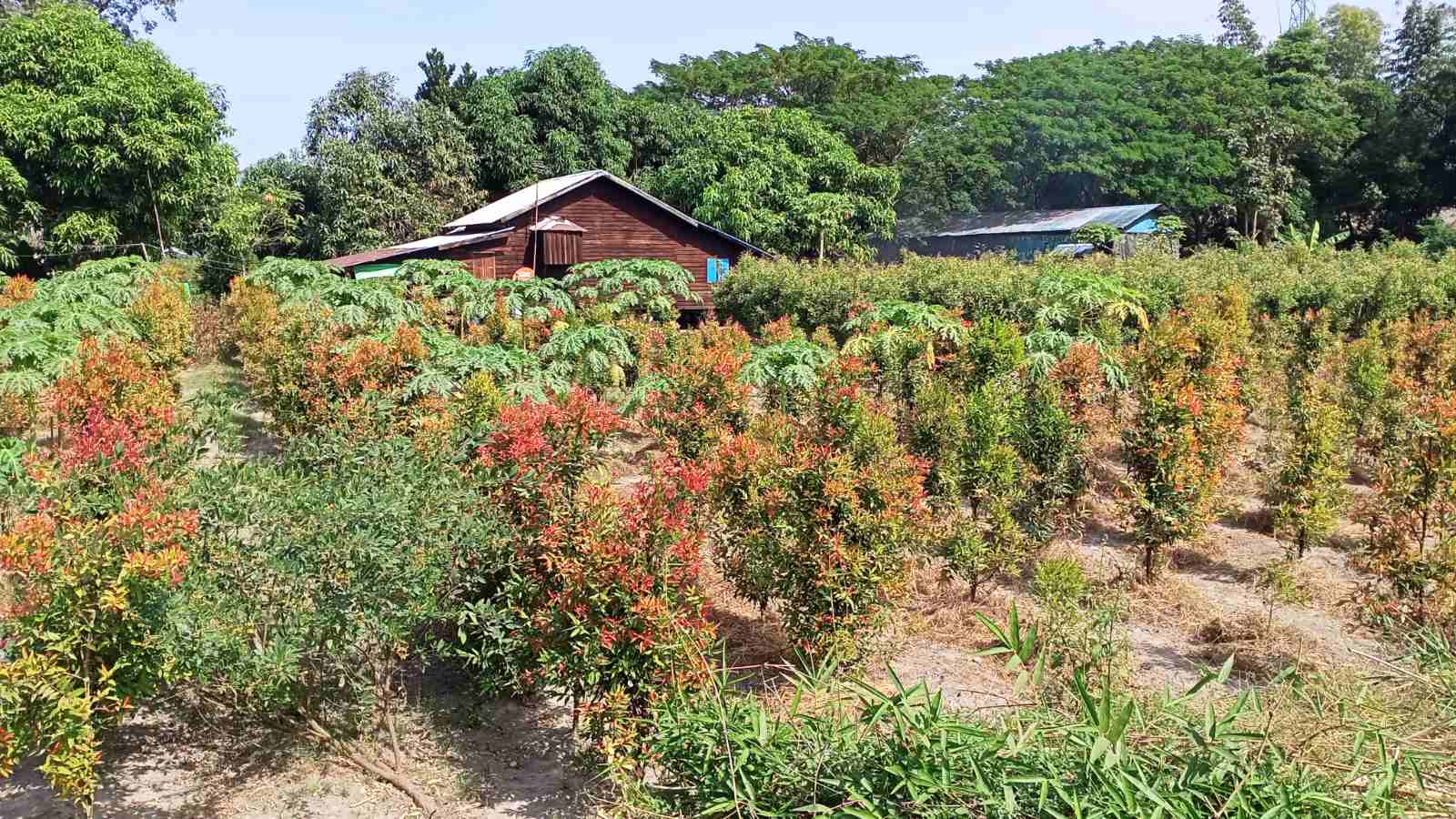 ၎င်း၏ခြံသည် သုံးဧကခန့်ကျယ်ဝန်းပြီး ဟင်းသီး ဟင်းရွက်နှင့် အာစီယံသပြေ၊ အောင်သပြေ စသောပန်းပင်များလည်း အများအပြား စိုက်ပျိုးထားရှိကာ အောင်မြင်ဖြစ်ထွန်းလျက်ရှိကြောင်း သိရသည်။