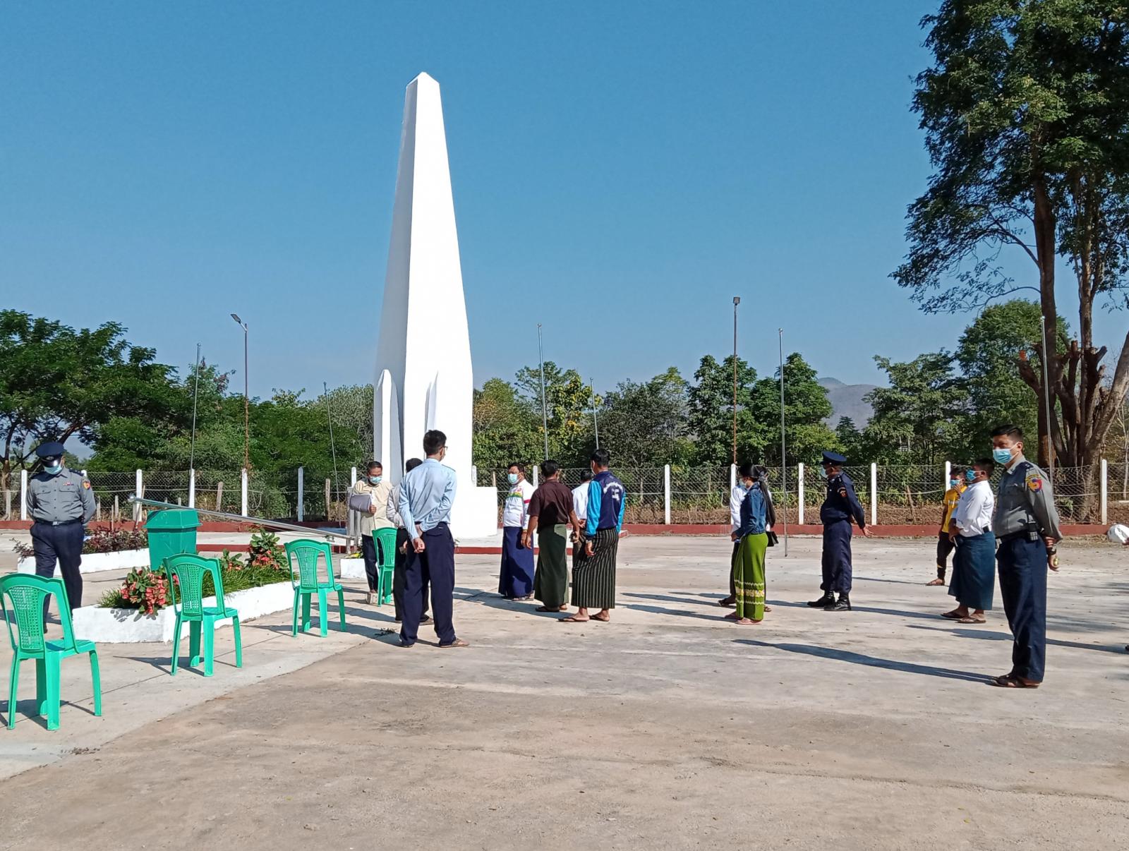 ထိုသို့ စစ်ဆေးဆောင်ရွက်ရာတွင် ခရိုင်အုပ်ချုပ်ရေးမှူး ဦးသိန်းအောင်နှင့် ကော်မတီအဖွဲ့များက ၂၀၂၁ ခုနှစ်၊ ဇန်နဝါရီ(၄)ရက်နေ့တွင် ကျရောက်မည့်(၇၃)နှစ်မြောက် လွတ်လပ်ရေးနေ့ အခမ်းအနား ကျင်းပနိုင်ရေးအတွက် လိုအပ်သည့် ရောင်စုံမီးများ တပ်ဆင်ထွန်းညှိနိုင်ရေး၊ နောက်ခံစာတန်းများကြိုတင်ပြင်ဆင်ထားရှိရေး၊ ကိုဗစ်-ရောဂါကူးစက်မှု မဖြစ်ပေါ်စေရေး အတွက် ကျန်းမာရေးလမ်းညွှန်ချက်များနှင့်အညီ ဆောင်ရွက်ထားရှိရေးတို့ကို မှာကြားပါသည်။