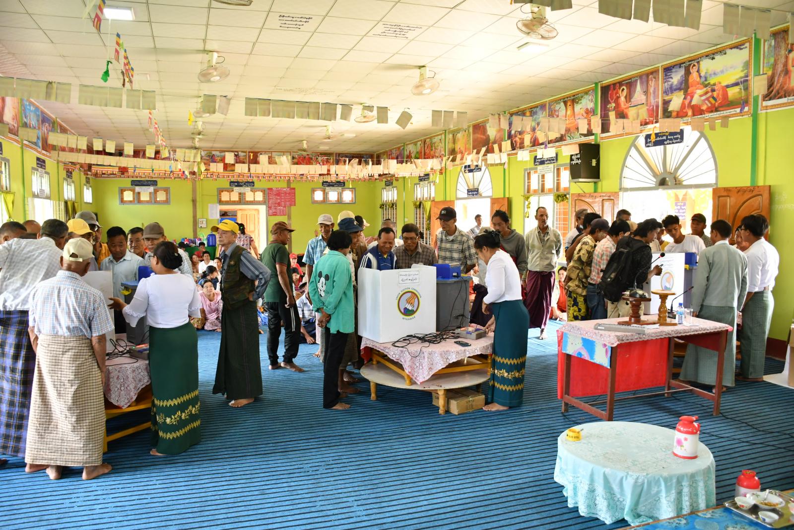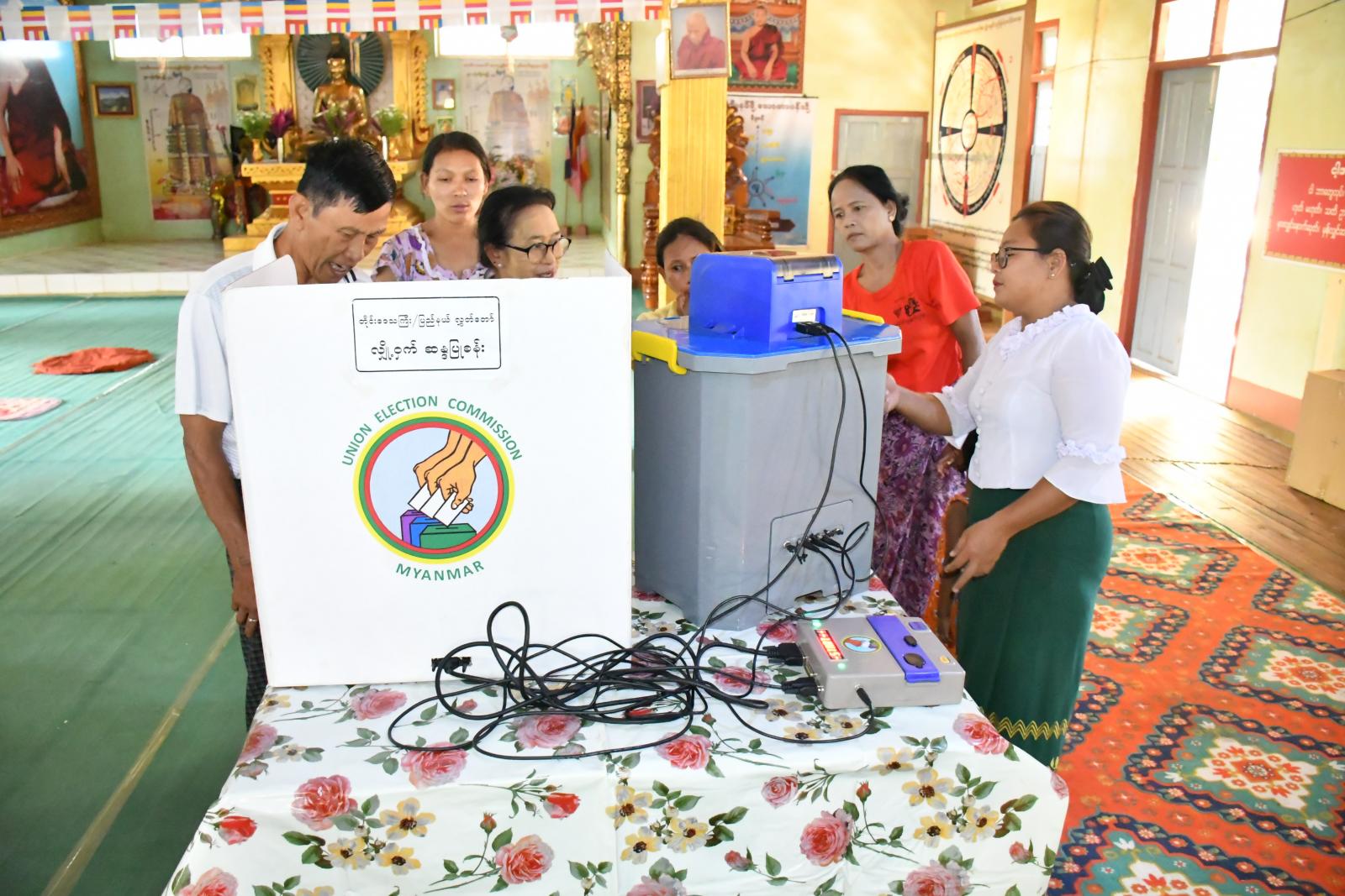 ရှမ်းပြည်နယ် (တောင်ပိုင်း)၊ ရပ်စောက်မြို့နယ်တွင် ပြည်သူများအနေဖြင့် ဆန္ဒမဲပေးရာ၌ တိကျမှန်ကန်မြန်ဆန်စွာ ဆန္ဒမဲပေးနိုင်ရေးအတွက် မြန်မာအီလက်ထရောနစ်မဲပေးစက်ဆိုင်ရာ အသိပညာပေးသရုပ်ပြသခြင်းကို ဇော်ဂျီရပ်ကွက်နှင့် မြို့ဦးရပ်ကွက်ရှိ ဓမ္မာရုံ၌ ယမန်နေ့နံနက်ပိုင်းက ဆောင်ရွက်ခဲ့ကြောင်း သိရသည်။