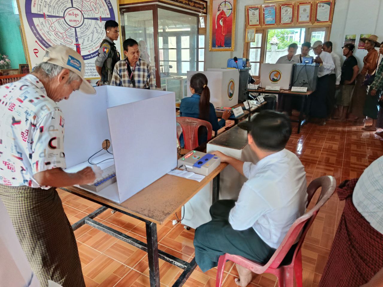 ဧရာဝတီတိုင်းဒေသကြီး၊ ပုသိမ်ခရိုင်၊ ကန်ကြီးထောင့်မြို့နယ်၌ မြို့နယ်ရွေးကောက်ပွဲကော်မရှင် အဖွဲ့ခွဲမှကြီးမှူး၍ မြို့နယ်အတွင်းရှိ မဲဆန္ဒရှင်များအား မြန်မာ့အီလက်ထရောနှစ်မဲပေးစက်(MEVM)နှင့်ပတ်သက်၍ သိရှိစေရန်ရည်ရွယ်ချက်ဖြင့် မဲပေးစက်(MEVM)ဆိုင်ရာ အသိပညာပေးခြင်းနှင့် လက်တွေ့စမ်းသပ်မဲပေးခြင်းကို ဩဂုတ်လ(၁၈)ရက်နေ့က စတင်ဆောင်ရွက်ခဲ့ရာ ယနေ့နံနက်ပိုင်းတွင်းလည်း မြင်းကဆိပ်တိုက်နယ်၌ ဆက်လက်ဆောင်ရွက်ခဲ့ကြကြောင်း သိရသည်။