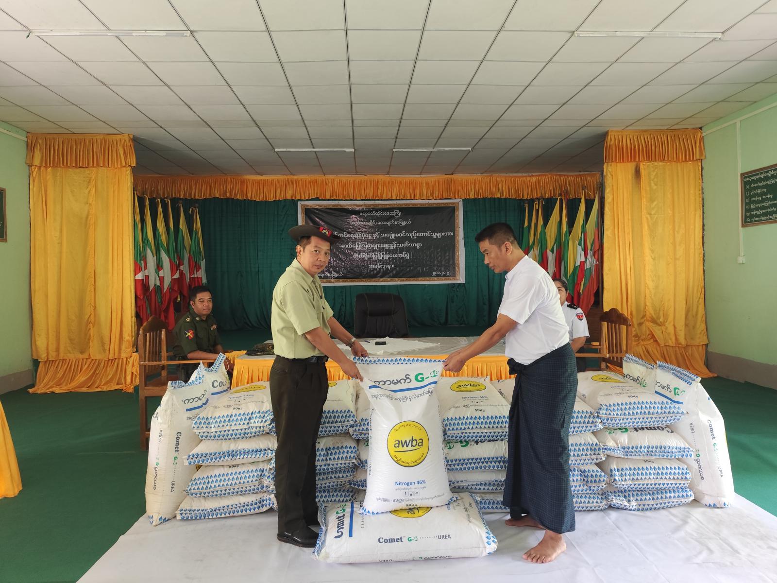 ဦးစွာ ခရိုင်စိုက်ပျိုးထုတ်လုပ်မှု တိုးတက်မြင့်မားရေးလုပ်ငန်းကြီးကြပ်မှုကော်မတီဥက္ကဋ္ဌ ဦးလှိုင်ထွန်းက နိုင်ငံ့စီပွားရန်ပုံငွေနှင့်အကျုံးမဝင်သည့် တောင်သူများအား ဓာတ်မြေဩဇာများကို ဈေးနှုန်းသက်သာစွာဖြင့် ဝယ်ယူသုံးစွဲနိုင်စေရန်အတွက် ပို့ဆောင် ရောင်းချပေးလျက် ရှိပါကြောင်း၊ တောင်သူများအနေဖြင့် ပြင်ပပေါက်ဈေးနှုန်းများထက် သက်သာသောဈေးနှုန်းဖြင့် ဝယ်ယူနိုင်စေရန်ရောင်းချပေးရာမှာ သီးနှံပေါ်ပေး(အကြွေး)စနစ်ဖြင့် တောင်သူများ အဆင်ပြေ စေရန်နှင့် ဓာတ်မြေဩဇာများအသုံးပြုပြီး မိုးစပါးအထွက်နှုန်း တိုးစေရေးအတွက် ဆောင်ရွက် ပေးခြင်းဖြစ်ကြောင်း ပြောကြားခဲ့သည်။