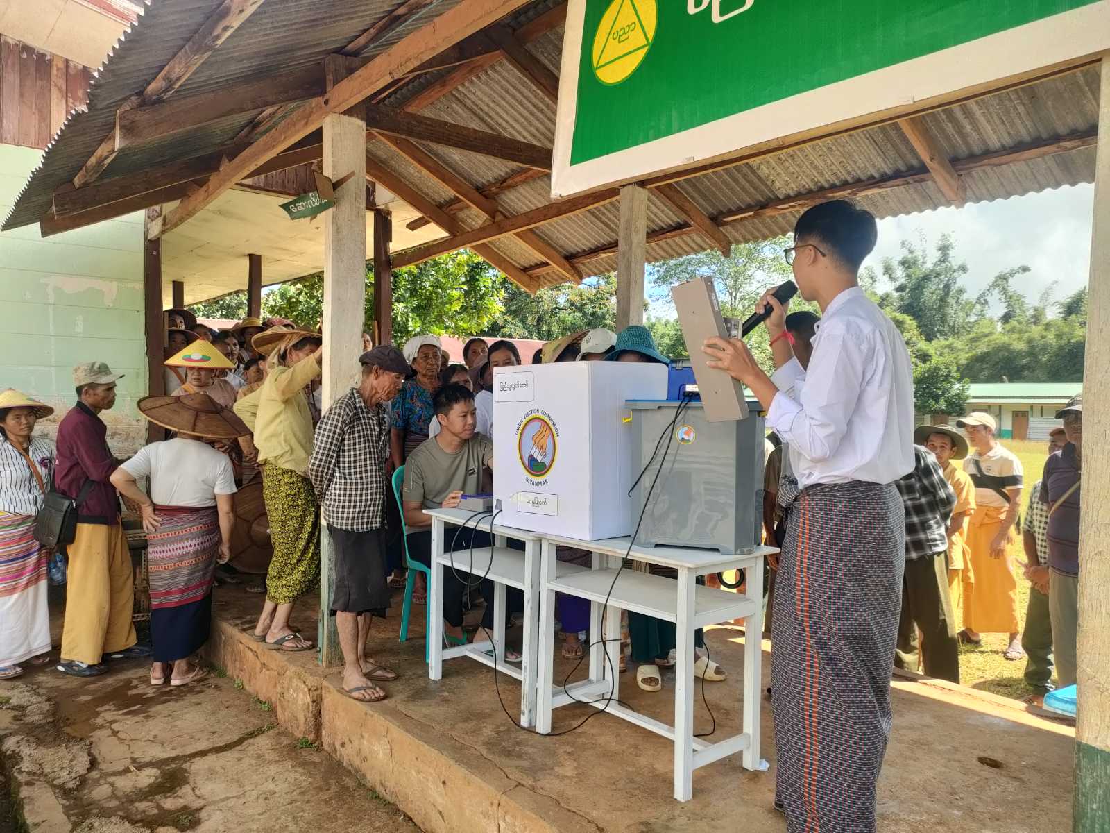 အဆိုပါ မြန်မာအီလက်ထရောနစ်မဲပေးစက် အသုံးပြု၍ လက်တွေ့စမ်းသပ်မဲပေးခြင်းတွင် မြို့နယ်ရွေးကောက်ပွဲကော်မရှင်အဖွဲ့ခွဲ အတွင်းရေးမှူး ဒေါ်နန်းဝိုခမ်းနှင့် အဖွဲ့ဝင်များက မြန်မာအီလက်ထရောနစ်မဲပေးစက်အကြောင်းနှင့် မဲပေးခြင်းပုံစံအား မြန်မာဘာသာ၊ ရှမ်းဘာသာ (၂)မျိုးဖြင့် အကျယ်တဝင့်ရှင်းလင်းပြောကြားပြီး တက်ရောက်လာသည့် ကျေးရွာနေပြည်သူများက မြန်မာအီလက်ထရောနစ်မဲပေးစက်ဖြင့် လက်တွေ့စမ်းသပ်မဲပေးခြင်းများ ဆောင်ရွက်ခဲ့ကြကြောင်း သိရသည်။