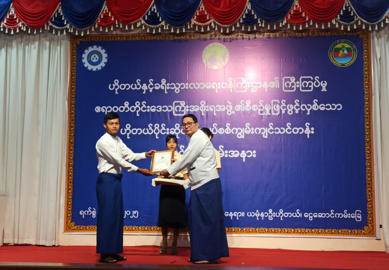 ဦးစွာ ဟိုတယ်နှင့်ခရီးသွားညွှန်ကြားမှူးဦးစီးဌာန၊ ဧရာဝတီတိုင်းဒေသကြီး ညွှန်ကြားရေးမှူး ဦးအောင်သူဦးမှ သင်တန်းဆင်းအမှာစကားပြောကြားခဲ့သည်။ ထို့နောက် ညွှန်ကြားရေးမှူးနှင့် တာဝန်ရှိသူများက ဟိုတယ်ပိုင်းဆိုင်ရာ လျှပ်စစ်ကျွမ်းကျင်သင်တန်းသင်ကြားပို့ချနေမှု video clip အား ကြည့်ရှုခဲ့ကြသည်။ ထို့နောက် ဟိုတယ်နှင့်ခရီးသွားညွှန်ကြားမှူးဦးစီးဌာန၊ ဧရာဝတီတိုင်းဒေသကြီး ညွှန်ကြားရေးမှူးမှ ဟိုတယ်ပိုင်းဆိုင်ရာ လျှပ်စစ်ကျွမ်းကျင်သင်တန်း တက်ရောက်ပြီးစီးခဲ့သော သင်တန်းသားများအတွက် အောင်လက်မှတ်များ ပေးအပ်ချီးမြှင့်ခဲ့ပြီး သင်တန်းနည်းပြဆရာ (၃)ဦးအား ဂုဏ်ပြုမှတ်တမ်းလွှာများ ပေးအပ်ချီးမြှင့်ခဲ့သည်။ ထို့နောက် သင်တန်းသားတစ်ဦးမှ ကျေးဇူးတင်စကားပြောကြားခဲ့ပြီး ညွှန်ကြားရေးမှူးနှင့် တာဝန်ရှိသူများ၊ သင်တန်းနည်းပြဆရာများနှင့် သင်တန်းသားများ စုပေါင်းမှတ်တမ်းတင်ဓာတ်ပုံ ရိုက်ကူးခဲ့ကြသည်။