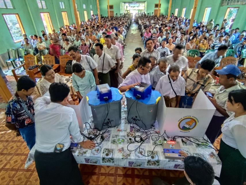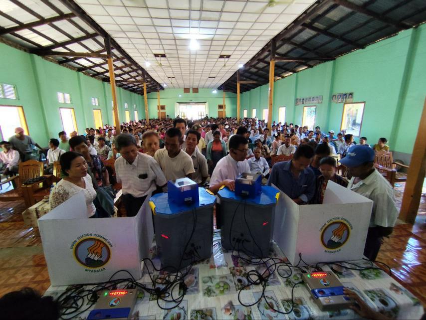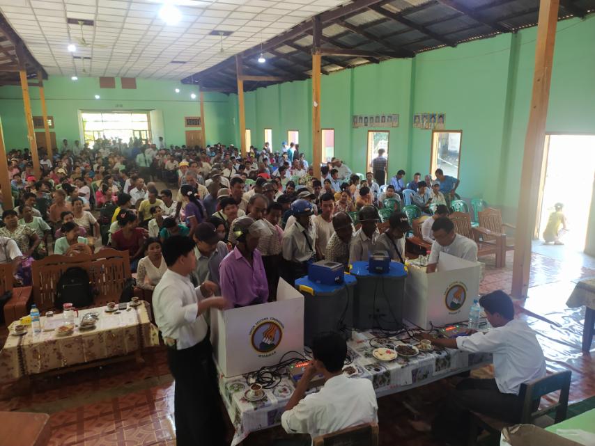ဧရာဝတီတိုင်းဒေသကြီး၊ မြန်အောင်ခရိုင်၊ မြန်အောင်မြို့နယ် သပြေကုန်းတိုက်နယ်မှ မဲဆန္ဒရှင်ပြည်သူများအား မြို့နယ်ရွေးကောက်ပွဲကော်မရှင်အဖွဲ့ခွဲမှ (MEVM) စက်နှင့် ပတ်သက်၍ သိရှိစေရန် အသိပညာပေးခြင်းနှင့် လက်တွေ့စမ်းသပ်မဲပေးခြင်းများကို ယနေ့နံနက်က အ.ထ.က သပြကုန်းခန်းမ၌ ဆောင်ရွက်ခဲ့သည်။