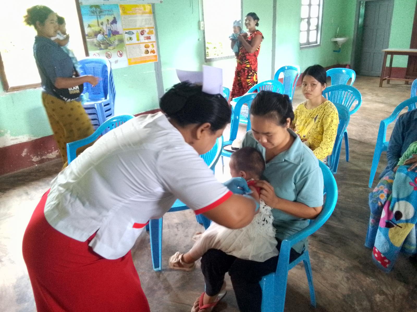 ထိုသို့ ဆောင်ရွက်ရာတွင် မွေးစမှ (၂)လ၊ (၄)လ၊ (၆)လ၊ (၉)လ၊ (၁)နှစ်ခွဲ၊ (၉)နှစ်၊ (၁၀)နှစ် အရွယ်ကလေးငယ်များအား အသည်းရောင်အသားဝါ (ဘီ)၊ ပိုလီယို၊ ပြင်းထန်ဝမ်းပျက်ဝမ်းလျှော(ရိုတာ)၊ ပြင်းထန်အဆုတ်ရောင်(ပီစီဗီ)၊ ဆုံဆို့၊ ကြက်ညှာ၊ မေးခိုင်၊ အသည်းရောင် အသားဝါ(ဘီ)၊ ဦးနှောက် အမြှေးရောင် အစရှိသည့်(ငါးမျိုးစပ်ကာကွယ်ဆေး)၊ ပိုလီယိုထိုးဆေး၊ ဝက်သက်ဂျိုက်သိုး၊ ဂျပန် ဦးနှောက်ရောင်နှင့် အိတ်(ခ်ျ)ပီဗီတို့ကို အသက်အရွယ်အလိုက် အကြိမ်ရေအလိုက်ထိုးနှံပေးလျက်ရှိကြောင်း သိရသည်။