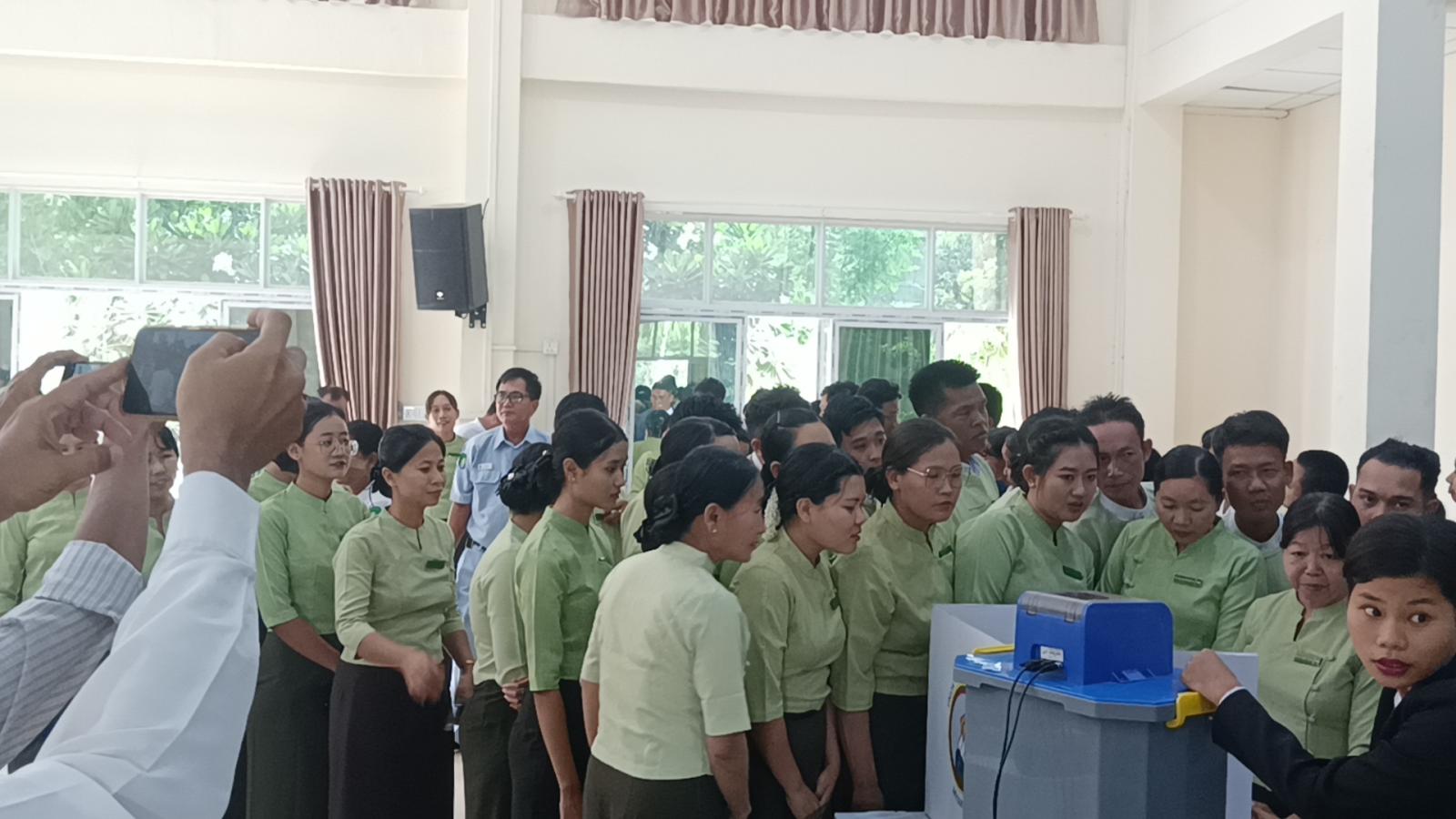 မြို့နယ်ရွေးကောက်ပွဲ ကော်မရှင်အဖွဲခွဲဥက္ကဋ္ဌ ဦးသန်းမောင်နှင့်အဖွဲ့ဝင်များက မဲပေးစက်ဖွဲ့စည်းတည်ဆောက်ပုံ၊ စက်တပ်ဆင်ပုံ၊ စမ်းသပ်မဲပေးပုံ၊ဖြန့်ခွဲပုံ၊ ရွေးကောက်ပွဲနေ့တွင် မဲရုံ၌မဲပေးစက်တပ်ဆင်ခင်းကျင်းပုံ ၊ မဲရလဒ်ရေတွက်ပုံ၊ နည်းဥပဒေပါအတိုင်း မဲရလဒ်စာရင်းပြုစုပုံ၊ မဲပေးစက်အား ပြန်လည်ထုပ်ပိုးသိမ်းဆည်းပုံနှင့် မဲရုံခင်းကျင်းမှုပုံစံများကို ဌာနဆိုင်ရာဝန်ထမ်းများအား လက်တွေ့စမ်းသပ်မဲပေးခြင်းသရုပ်ပြသခဲ့သည်။
