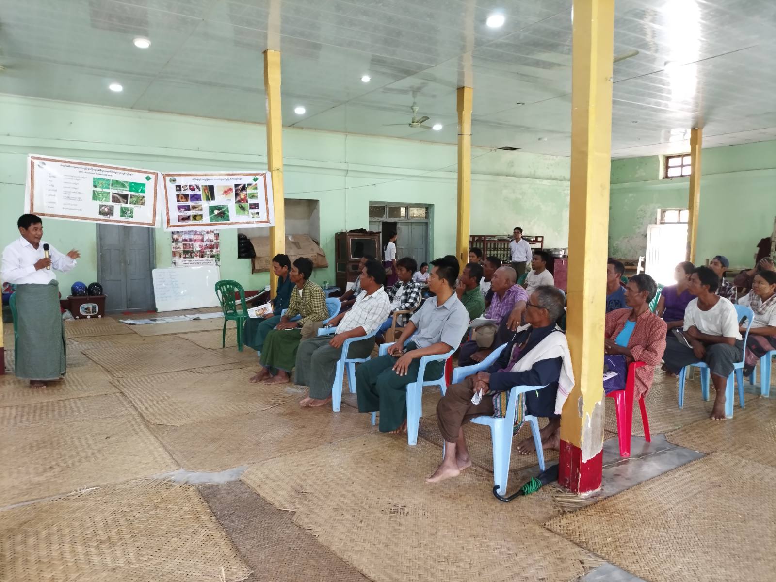 ရှေးဦးစွာ မြို့နယ်စိုက်ပျိုးရေးဦးစီးဌာနမှ ဦးစီးအရာရှိ ဦးစိုးသိန်းက ဒေသခံတောင်သူများ၏ ဝါသီးနှံစိုက်ပျိုးထုတ်လုပ်မှု တိုးတက်မြင့်မားရေးနှင့် ဝါစိုက်ခင်းများတွင် အတွေ့များသည့် ပိုးမွှားများအန္တရာယ်ကာကွယ်နှိမ်နင်းခြင်းနည်းပညာများ၊ သဘာဝဆေး၊ သဘာဝမြေဩဇာလက်တွေ့ပြုလုပ်ခြင်းနည်းပညာများ၊ ဓာတ်မြေဩဇာနှင့် သဘာဝမြေဩဇာ စနစ်တကျ ရောစပ်အသုံးပြုခြင်းနည်းပညာများအား တက်ရောက်လာသည့် တောင်သူ(၂၀)ဦးအား အသေးစိတ်ရှင်းလင်းဆွေးနွေးပြီးနောက် တောင်သူများ၏ ဆွေးနွေးမေးမြန်းမှုများကို ပြန်လည်ဖြေကြားပေးခဲ့သည်။