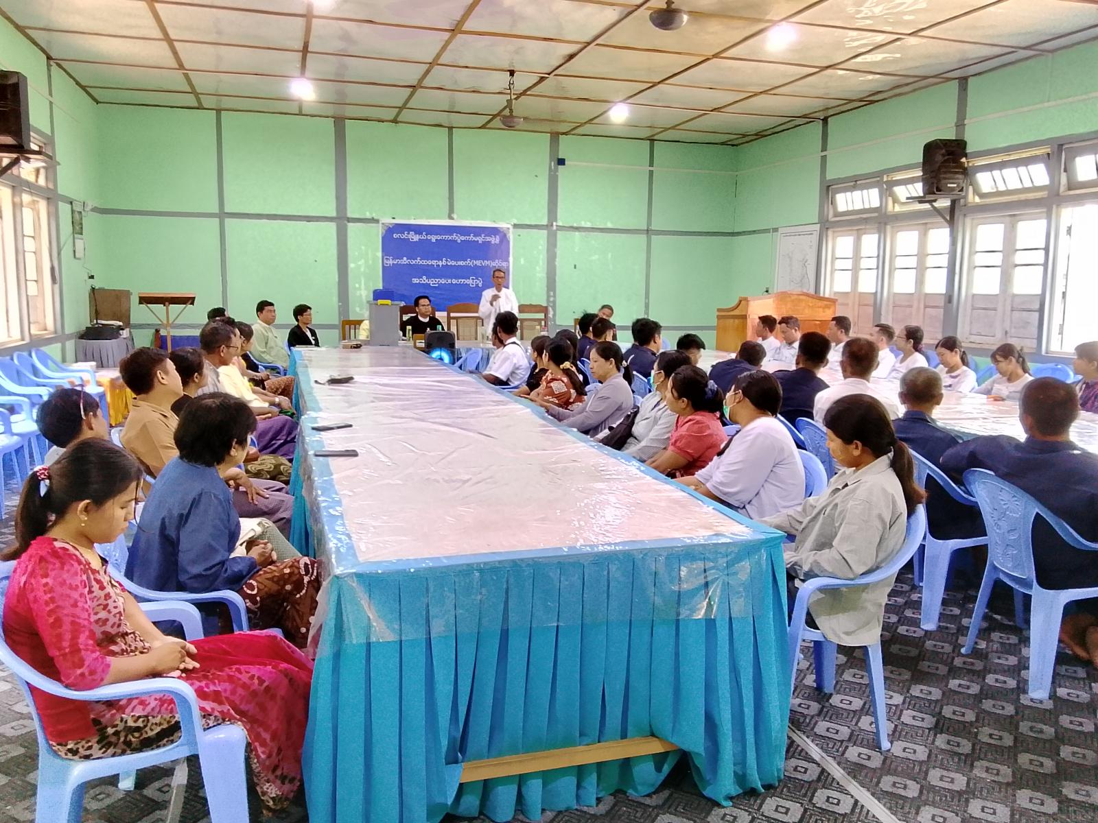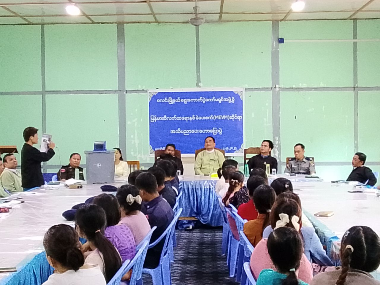 အခမ်းအနားသို့ မြို့နယ်စီမံခန့်ခွဲရေးနှင့်အုပ်ချုပ်ရေးကော်မတီဥက္ကဋ္ဌ ဦးမင်းသီဟဇော်နှင့် အဖွဲ့ဝင်များတက်ရောက်ခဲ့ပြီး၊ မြို့နယ်ရွေးကောက်ပွဲကော်မရှင် ဦးစီးအရာရှိ ဒေါ်ကြည်ကြည်ထွေးတို့မှ မဲဆန္ဒရှင်ဝန်ထမ်းများအား၊ မြန်မာ့အီလက်ထရောနစ် (MEVM)မဲပေးစက် အသုံးပြုပုံနည်းစနစ်များအား ရှင်းလင်းပြောကြားခဲ့သည်။