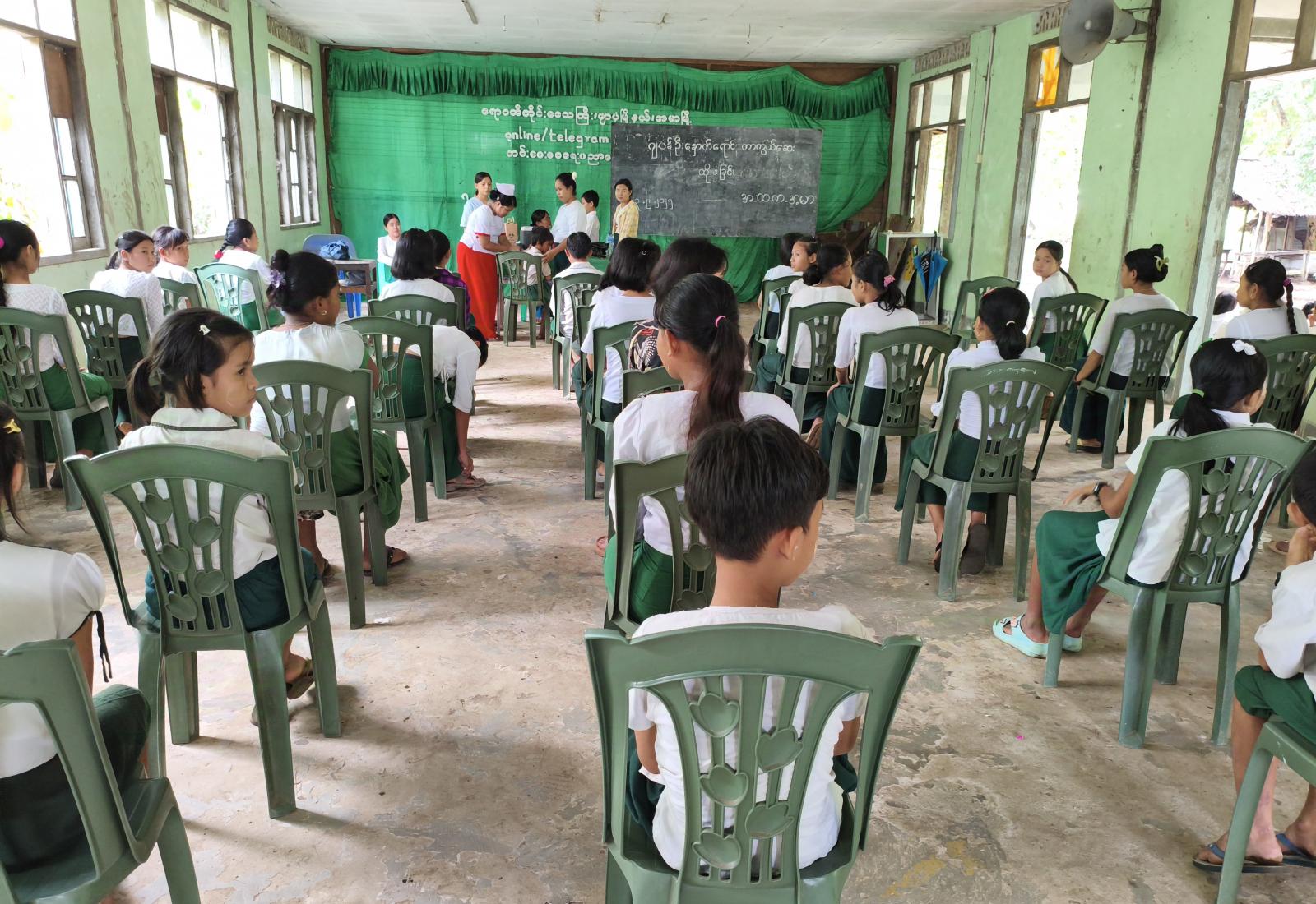 ဧရာဝတီတိုင်းဒေသကြီး၊ ဖျာပုံခရိုင်၊ အမာမြို့၌ ပြည်သူ့ကျန်းမာရေးဦးစီးဌာနမှ ဂျပန်ဦးနှောက်ရောင် ရောဂါကာကွယ်ဆေးများထိုးနှံပေးခြင်းကို အမာမြို့၊ အခြေခံပညာအထက်တန်းကျောင်း၌ စက်တင်ဘာလ(၃)ရက်နေ့ မွန်းလွဲ(၂)နာရီအချိန်က ထိုးနှံပေးခဲ့သည်။