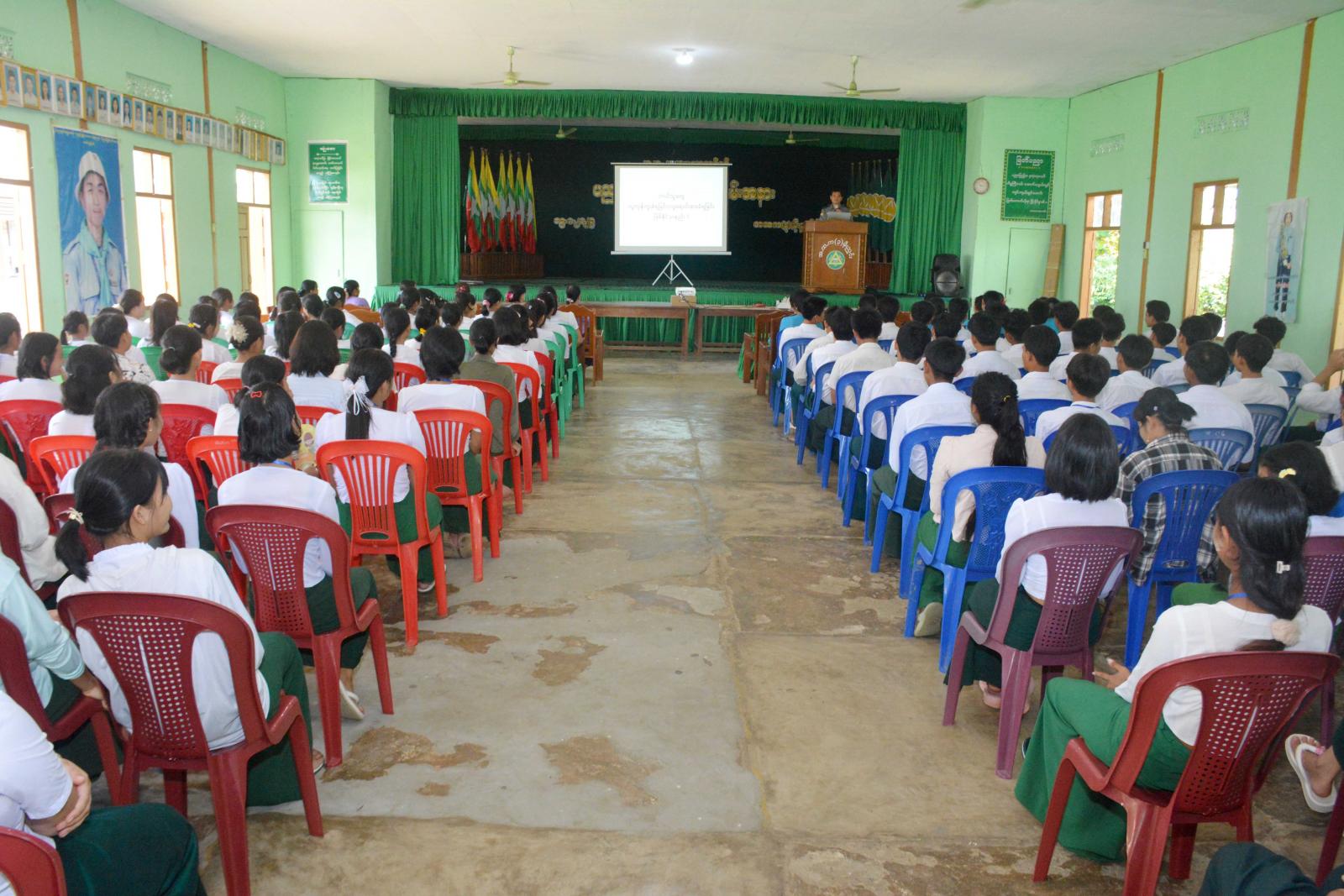 ကချင်ပြည်နယ် မိုးညှင်းခရိုင် မိုးညှင်းမြို့ အခြေခံပညာကျောင်းများမှ ကျောင်းသားကျောင်းသူ များ လူကုန်ကူးမှုအန္တရာယ် တားဆီးကာကွယ်ရေးအသိပညာပေး ဟောပြောပွဲကို ယမန်နေ့နံနက် (၉) နာရီခွဲက အမှတ် (၃) အခြေခံပညာအထက်တန်းကျောင်း အောင်ဆန်းခန်းမ၌ ကျင်းပသည်။