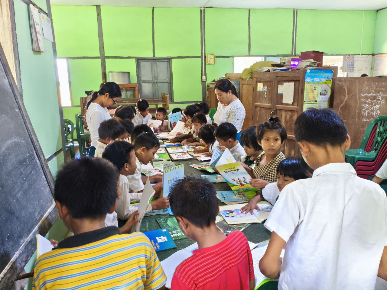 ဆက်လက်၍ ပြန်ကြားရေးနှင့်ပြည်သူ့ဆက်ဆံရေးဦးစီးဌာနဝန်ထမ်းများမှ ကျောင်းသား၊ ကျောင်းသူလေးများကို ရုပ်ပုံပါစာအုပ်ဖြင့်ပုံပြင်ပြောခြင်း၊ စက္ကူပြဇာတ်ဖြင့် ပုံပြင်ပြောပြခြင်းနှင့် စာဖတ်ရှိန်မြှင့်တင်ရေးအတွက် အသိပညာဗဟုသုတရရှိစေမည့် စာအုပ်စာစောင်များကို ဖတ်ရှုစေခြင်းနှင့် အသိပညာပေးနံရံကပ်စာစောင်များ ပြသခြင်းတို့ ဆောင်ရွက်ခဲ့ကြောင်း သိရသည်။